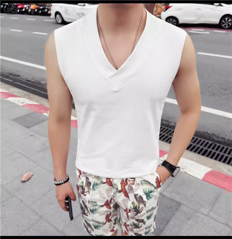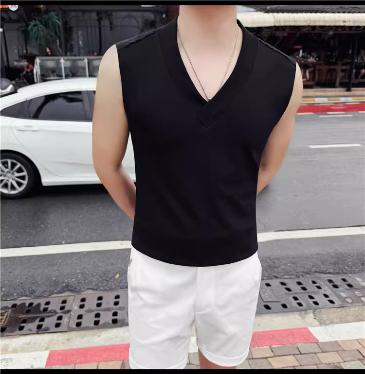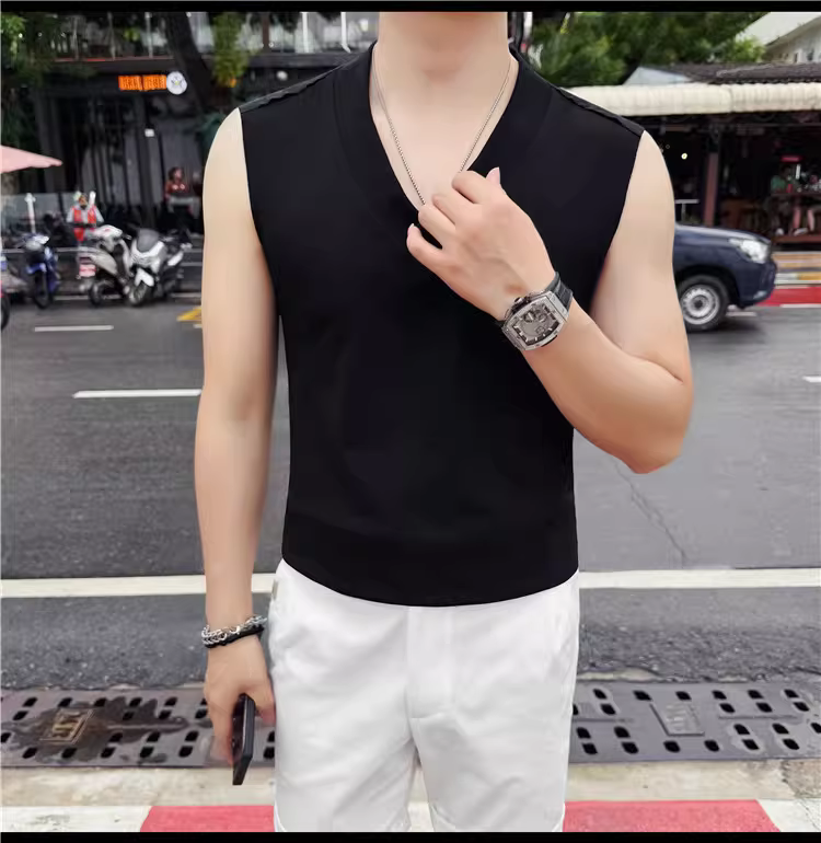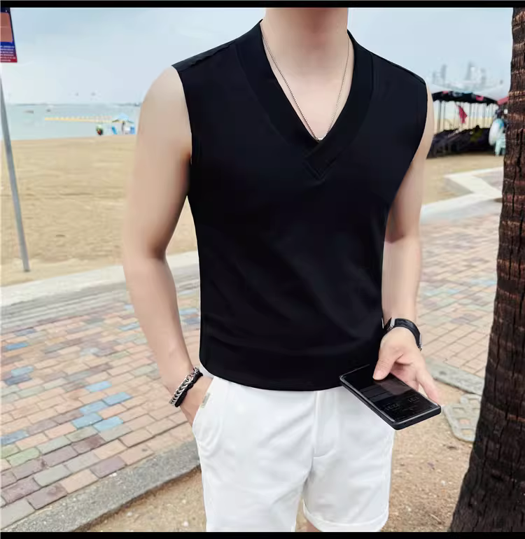 Áo gile nam cổ V không tay, kiểu mới hè 2025, áo thể thao cao cấp, đa năng và thoải mái, màu đen.