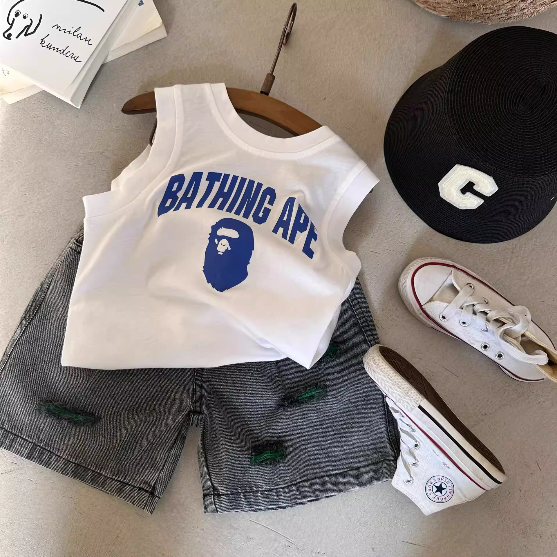 Áo gile trẻ em hè 2025 mẫu mới bé trai bé gái in hình trước sau áo ba lỗ kiểu Nhật mỏng thoáng mát
