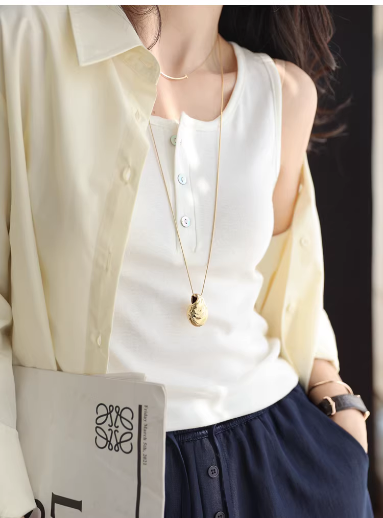 - Áo gile vải lanh Pháp! Áo gile cổ tròn cài khuy, chất liệu vải lanh Tencel thoáng mát, dành cho nữ.