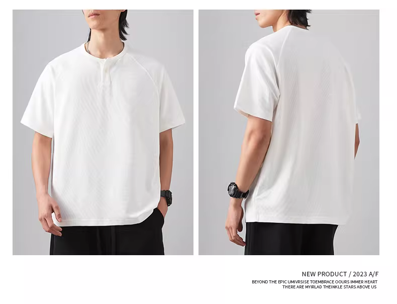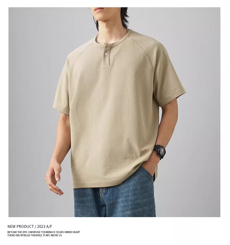 - Áo Henley nam tay ngắn mùa hè 2024 kiểu Mỹ cổ điển, chất liệu dày dặn, phong cách mạnh mẽ, cao cấp, dáng rộng