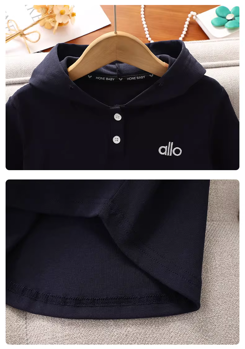 - Áo hoodie bé gái xuân thu kiểu mới 2025 quần áo trẻ em áo thun dài tay bé lớn kiểu thu áo ngắn bé gái