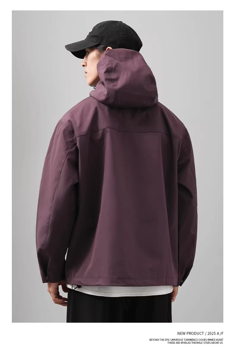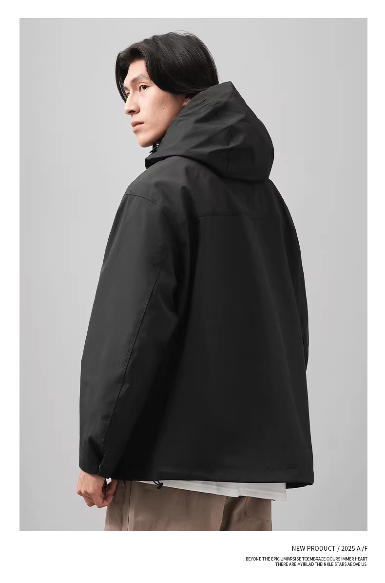 Áo khoác ba lớp nguyên chất dành cho nam giới, áo khoác bảo hộ lao động mùa xuân và mùa thu, quần áo đi bộ đường dài và leo núi có mũ trùm đầu ngoài trời thông thường.