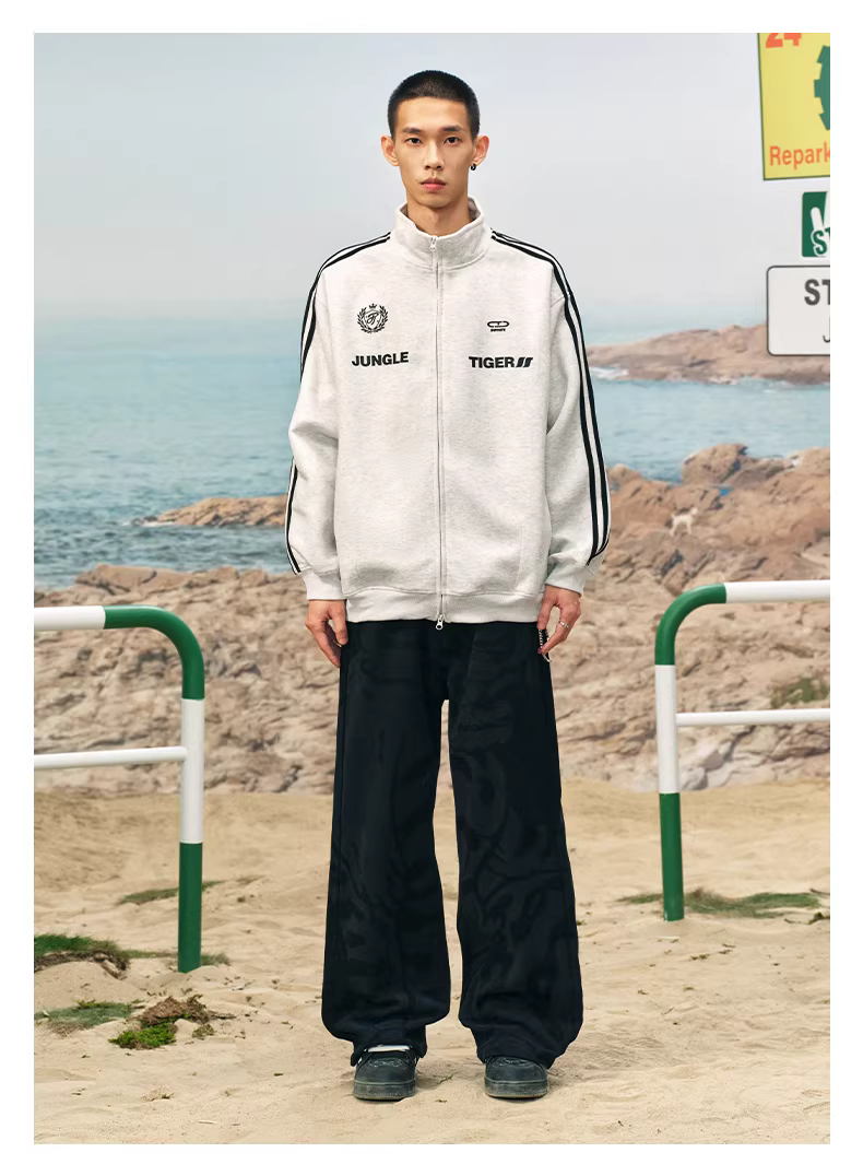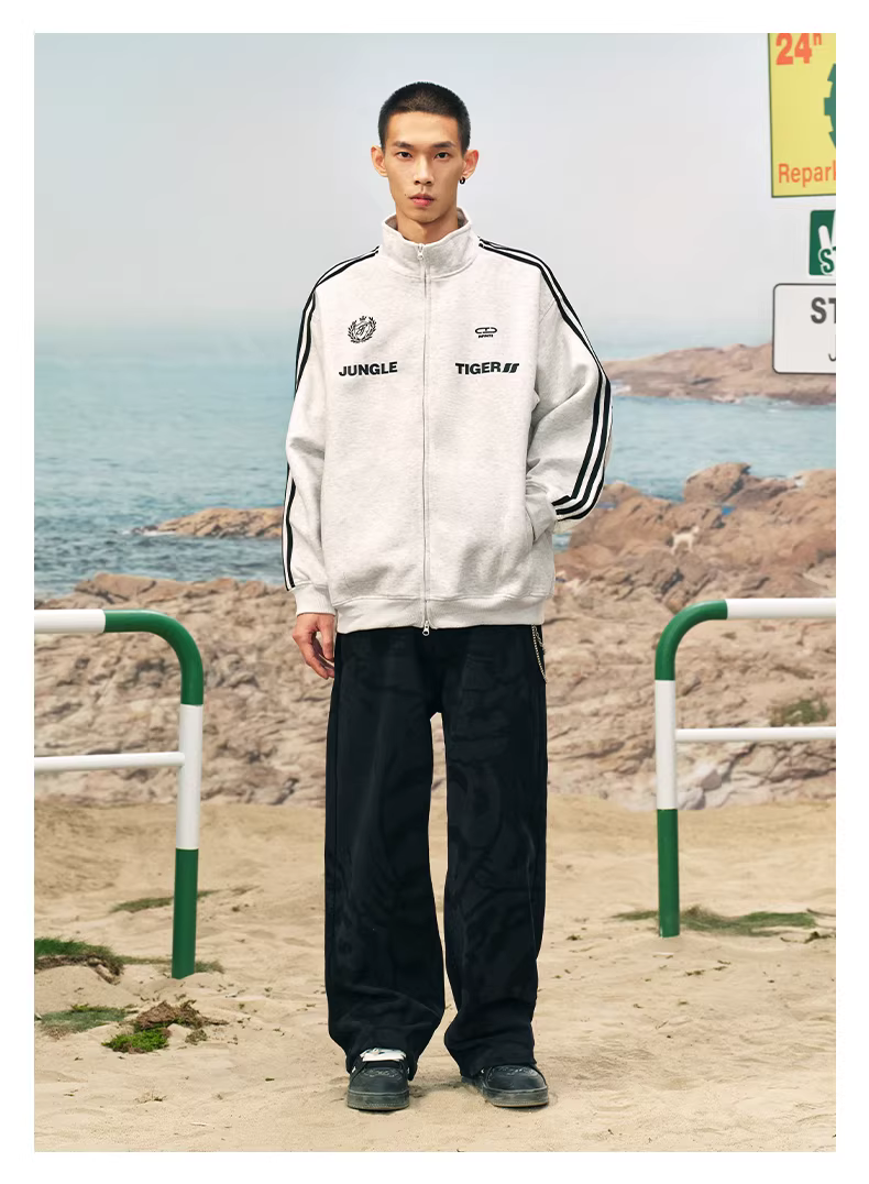 - Áo khoác ba sọc kiểu Mỹ của Jungle Tiger Áo khoác thể thao cổ đứng kiểu dáng thời thượng mùa thu đông dành cho nam và nữ