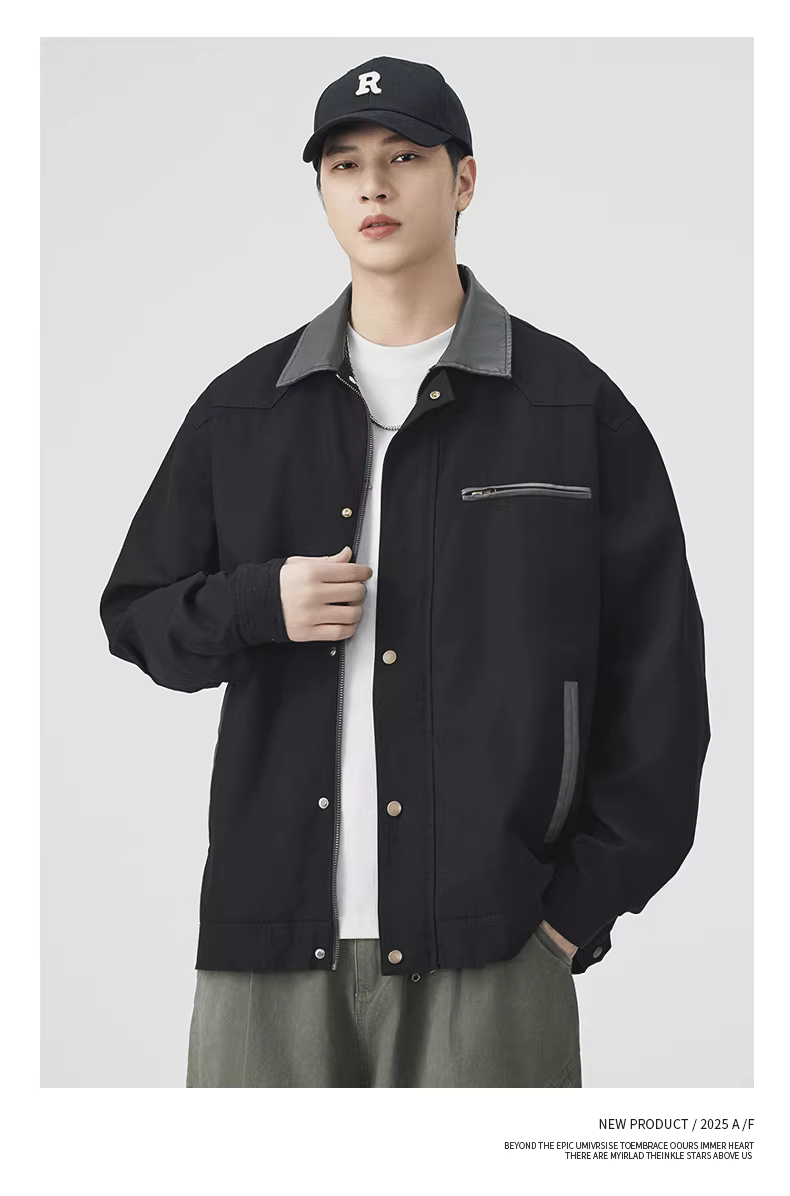 - Áo khoác bảo hộ lao động Detroit bằng cotton nguyên chất dành cho nam giới, mùa thu, phong cách cổ điển retro của Mỹ, thương hiệu thời thượng, dáng rộng, áo khoác cổ bẻ.