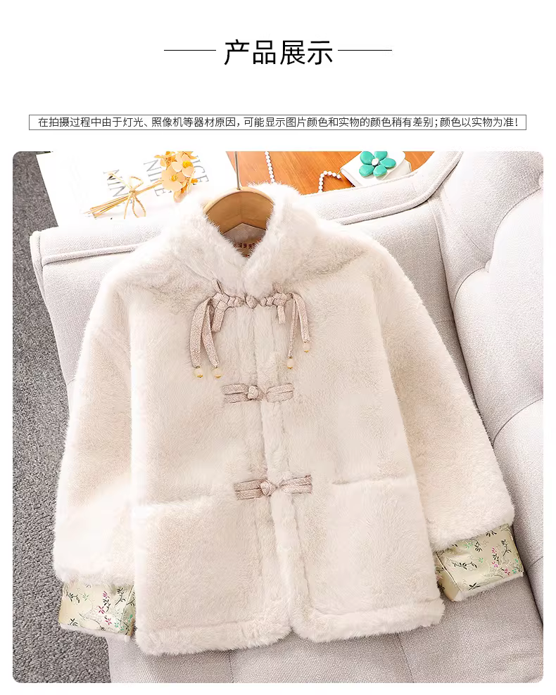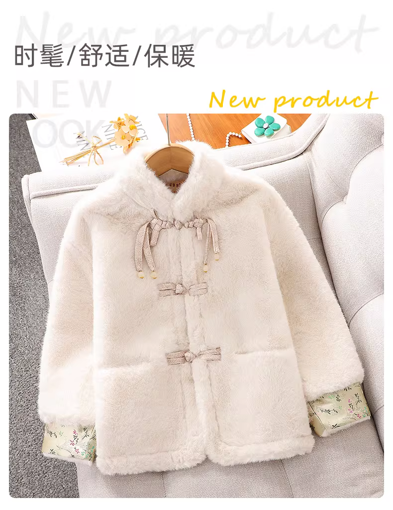 - Áo khoác bé gái 2025 thu đông mới, thời trang trẻ em phong cách Trung Hoa mới, áo len lông nhung dày kiểu Hanfu
