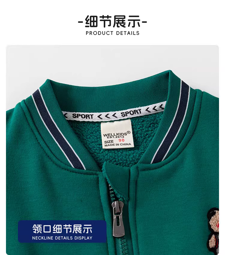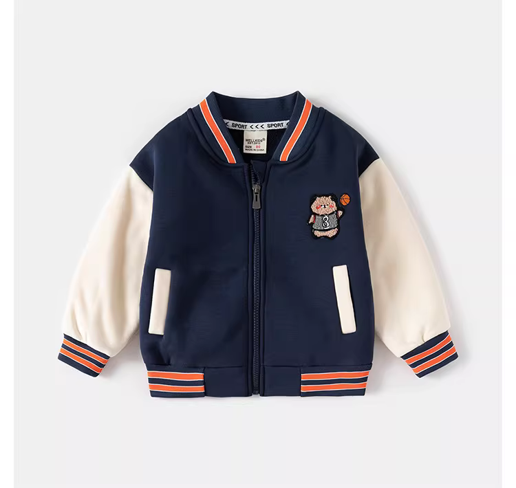 - Áo khoác bóng chày trẻ em thời trang 2025, quần áo trẻ em mùa xuân đông, áo thun thêu hoạt hình ấm áp cho bé, áo khoác nỉ có khóa kéo cho trẻ em