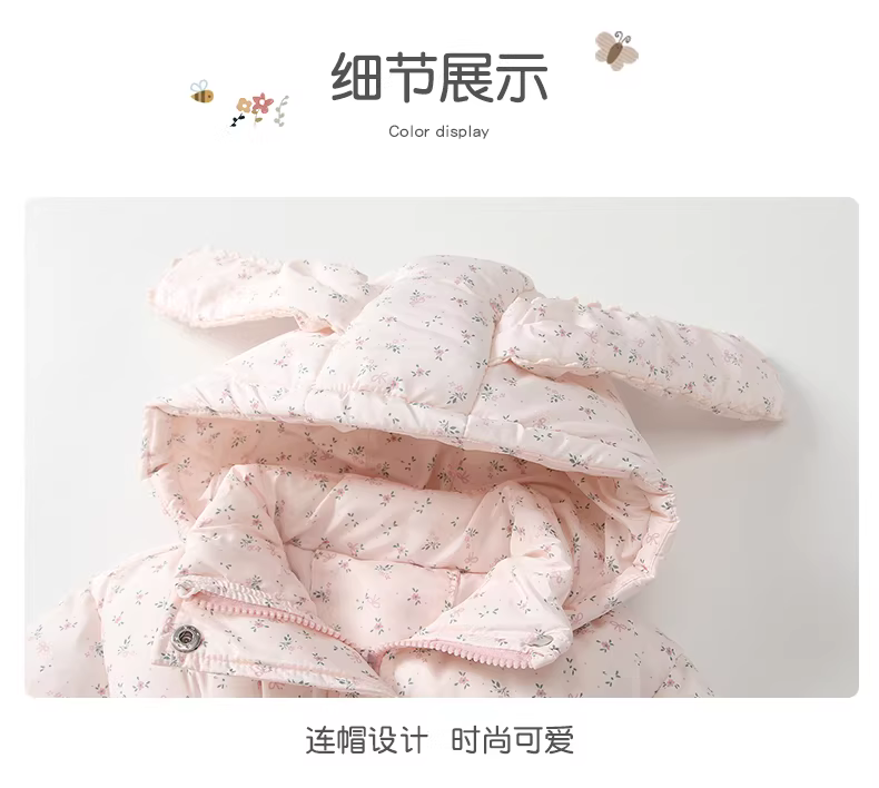- Áo khoác bông giữ ấm mùa đông cho bé gái Fanhle 2025, áo khoác có mũ trùm đầu họa tiết hoa cho trẻ em