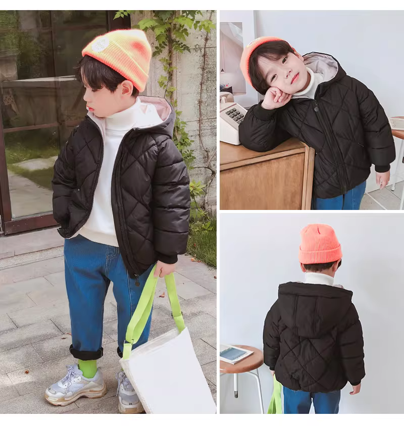 - Áo khoác bông mùa đông cho bé trai, áo khoác bông dày có mũ trùm đầu cho trẻ em, áo khoác bông lót lông cừu ấm áp thời trang cho bé gái và trẻ sơ sinh.