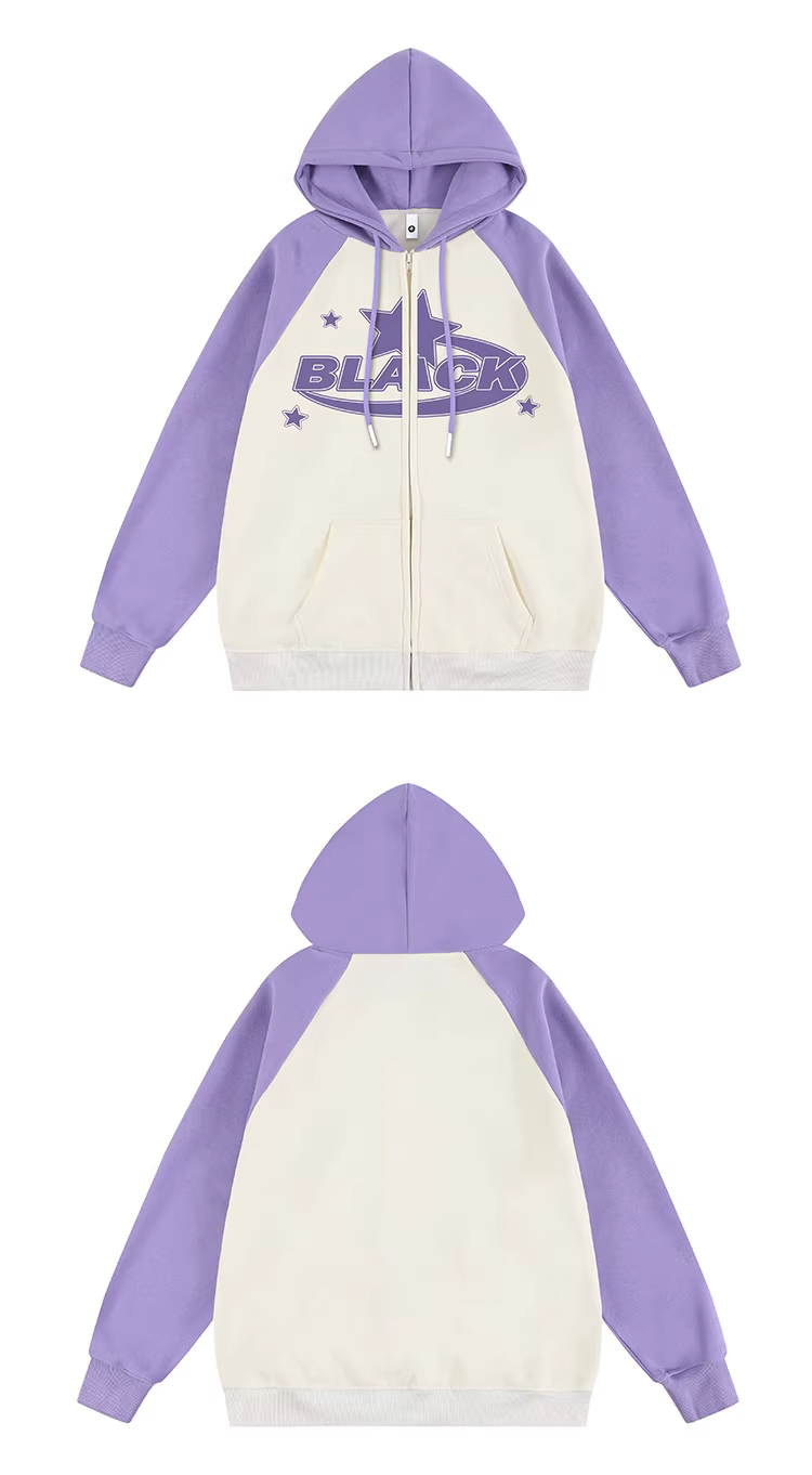 Áo khoác cardigan có lót lông cừu từ Mars Star Interweaving Design Áo khoác có mũ trùm đầu tay áo raglan màu sắc tương phản