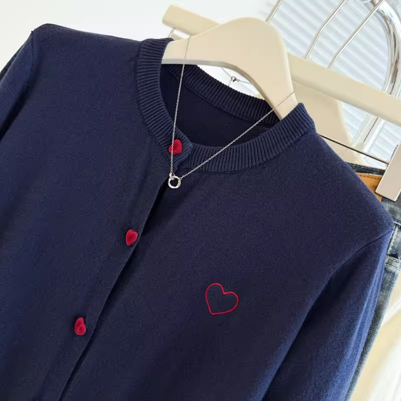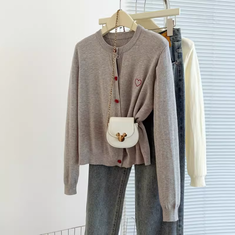 - Áo khoác cardigan dệt kim cổ tròn thêu nhãn cắt bỏ, kiểu dáng mới, rộng rãi, tôn dáng, dành cho nữ, giảm giá.