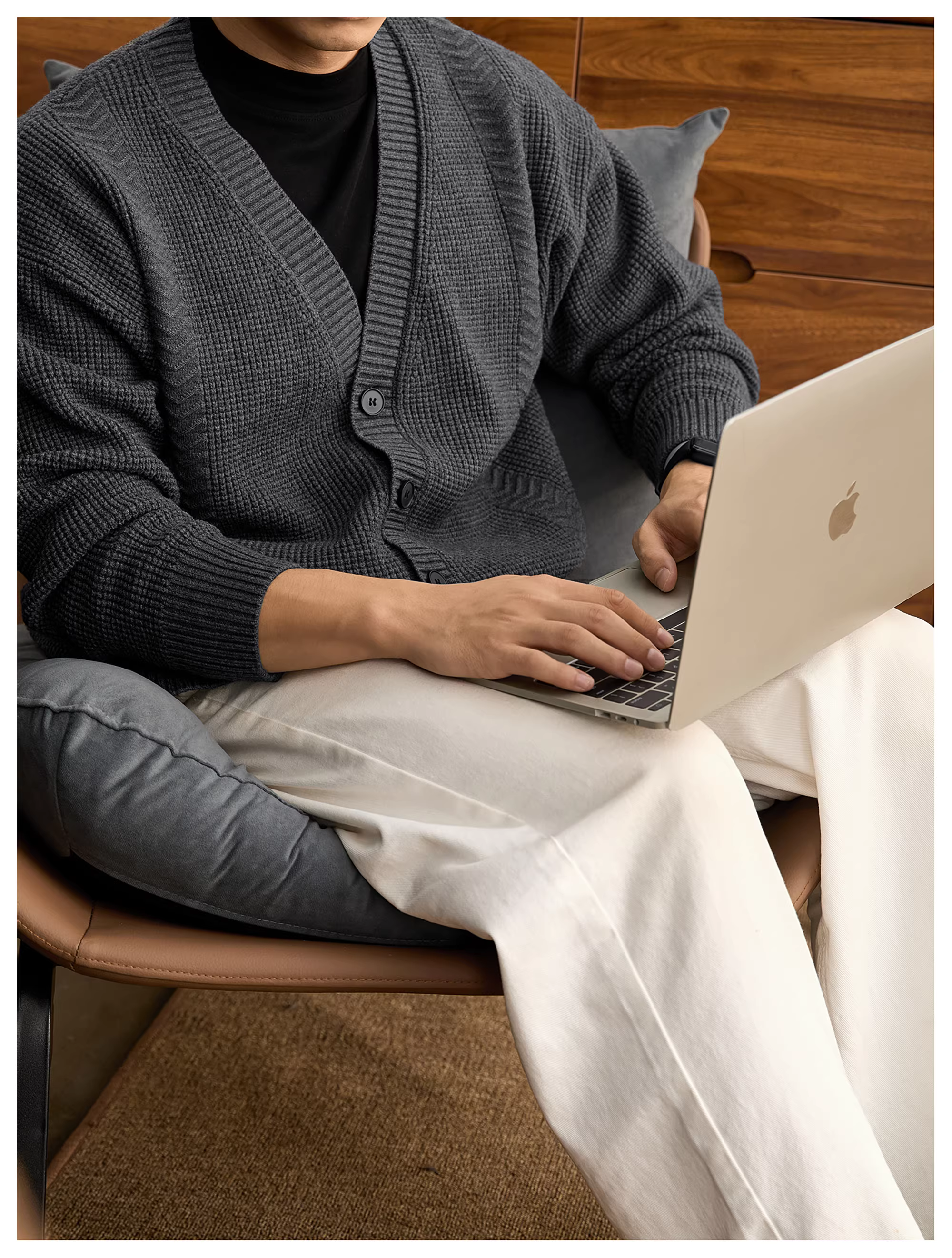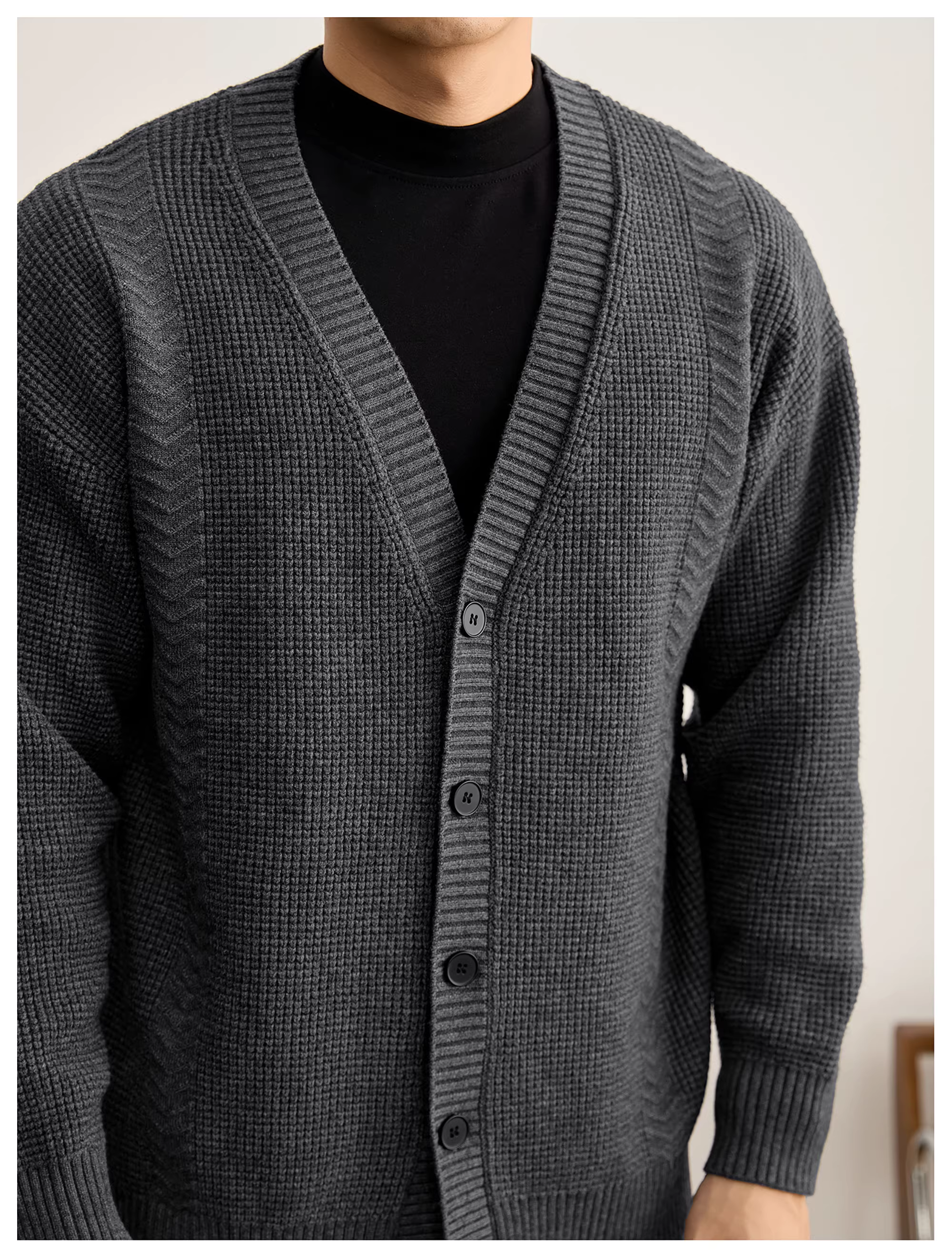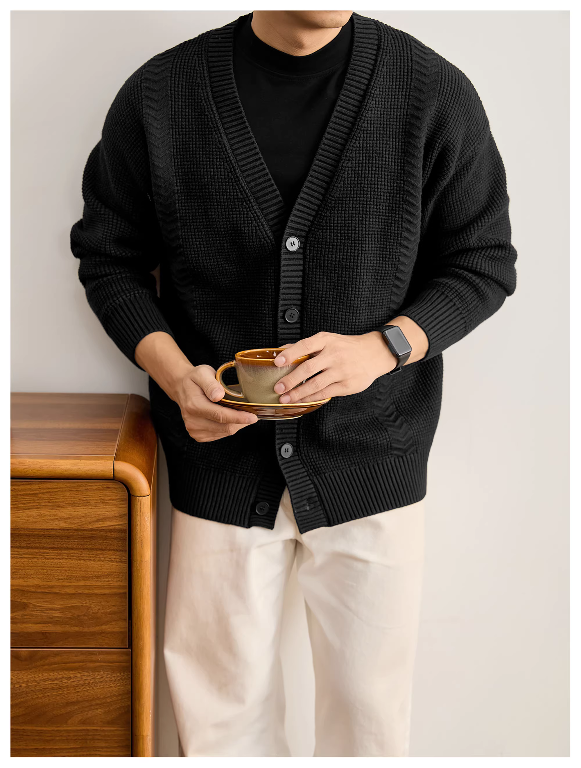 Áo khoác cardigan dệt kim màu trơn LUUD nam chất liệu vải dệt hoa văn hạt lúa mì mềm mại và thân thiện với da, chất liệu dày dặn 800g, cổ chữ V
