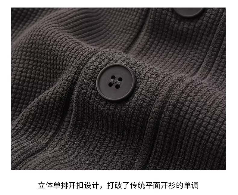 - Áo khoác cardigan dệt kim nặng kiểu waffle Pure Group 470G dành cho nam, mùa thu đông, phong cách retro Nhật Bản, cổ Henry, áo khoác thể thao thường ngày