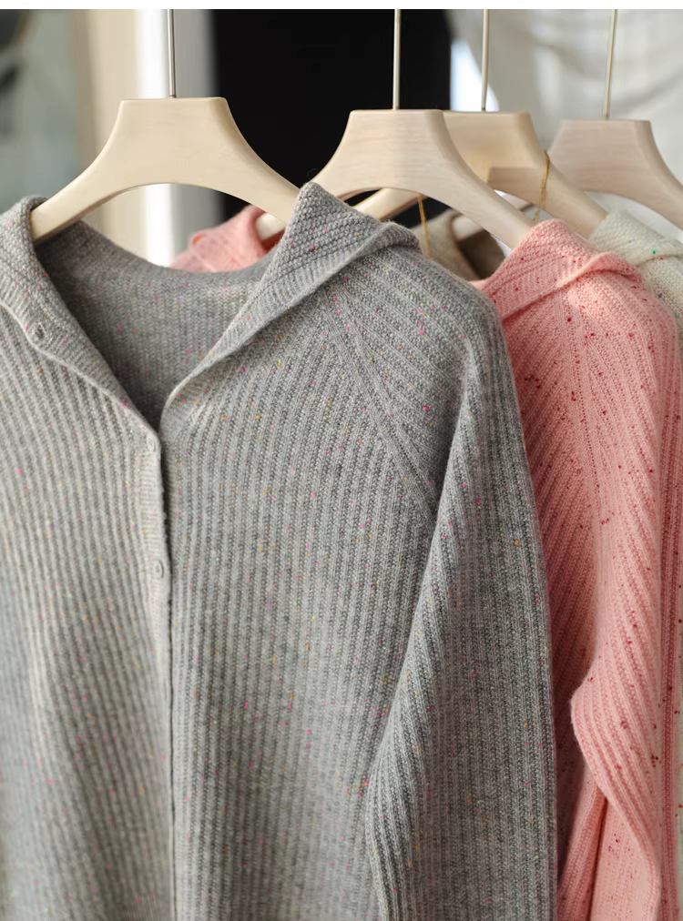 - Áo khoác cardigan len dạ dày dặn 100% len Basulan nguyên chất! 300g, dày dặn, ấm áp, có chấm bi, dáng rộng, có mũ trùm đầu dành cho nữ mùa thu.
