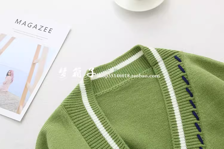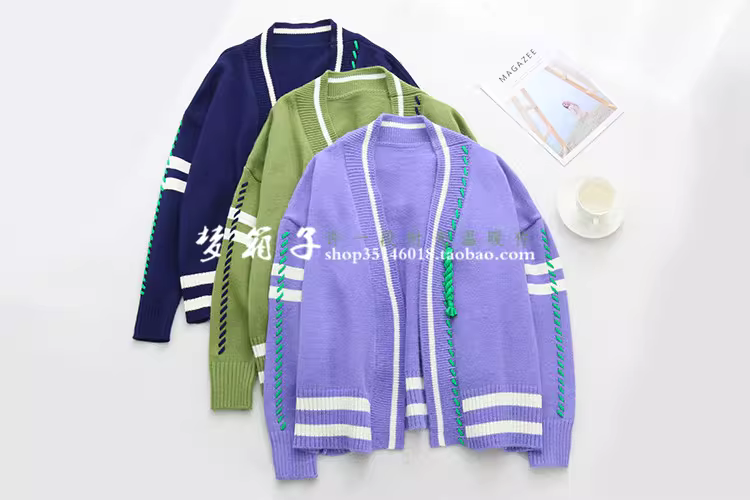 - Áo khoác cardigan len dệt kim dáng rộng phối màu kiểu dáng mới Thu 2024 Dream Box dành cho học sinh, nữ sinh phong cách đại học