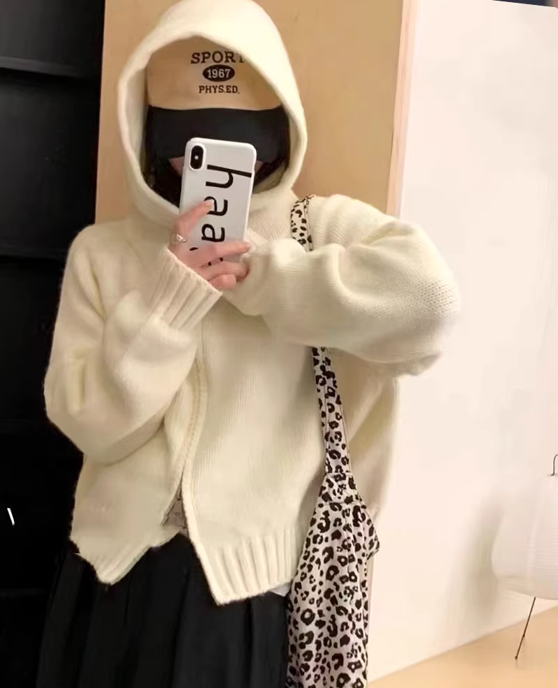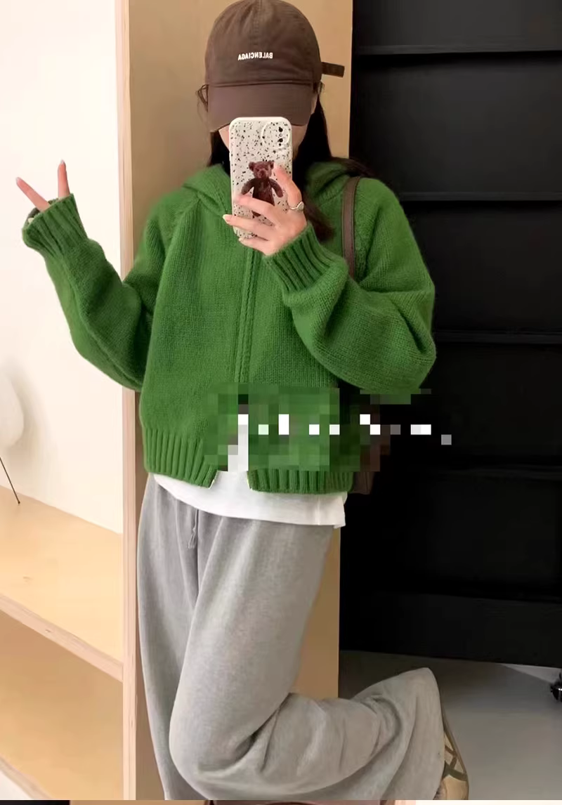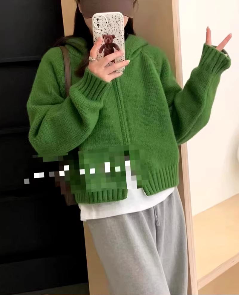 Áo khoác cardigan len dệt kim màu xanh lá cây La Chapelle dành cho nữ, kiểu dáng rộng rãi, phong cách lười biếng, mới mùa thu đông 2025