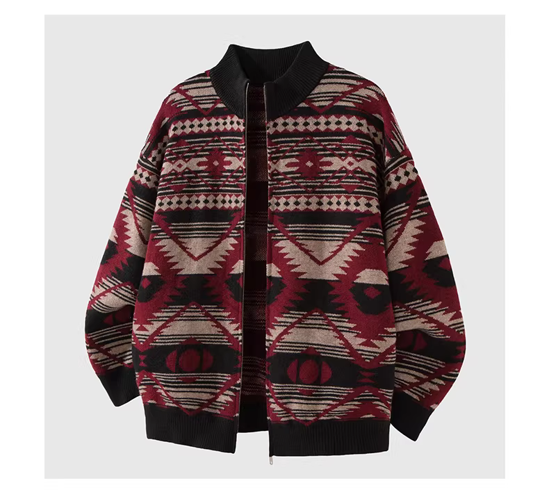 Áo khoác cardigan len Fair Isle nguyên chất dành cho nam, phong cách cổ điển mùa thu đông, chất liệu dày dặn 850G, cổ đứng, giữ ấm.