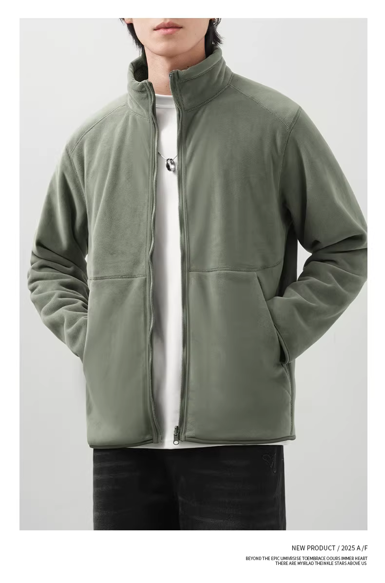 Áo khoác cardigan nam hai mặt chất liệu lông cừu, dày dặn, ấm áp, kiểu dáng áo khoác mềm mại có cổ đứng, thích hợp cho mùa thu đông.