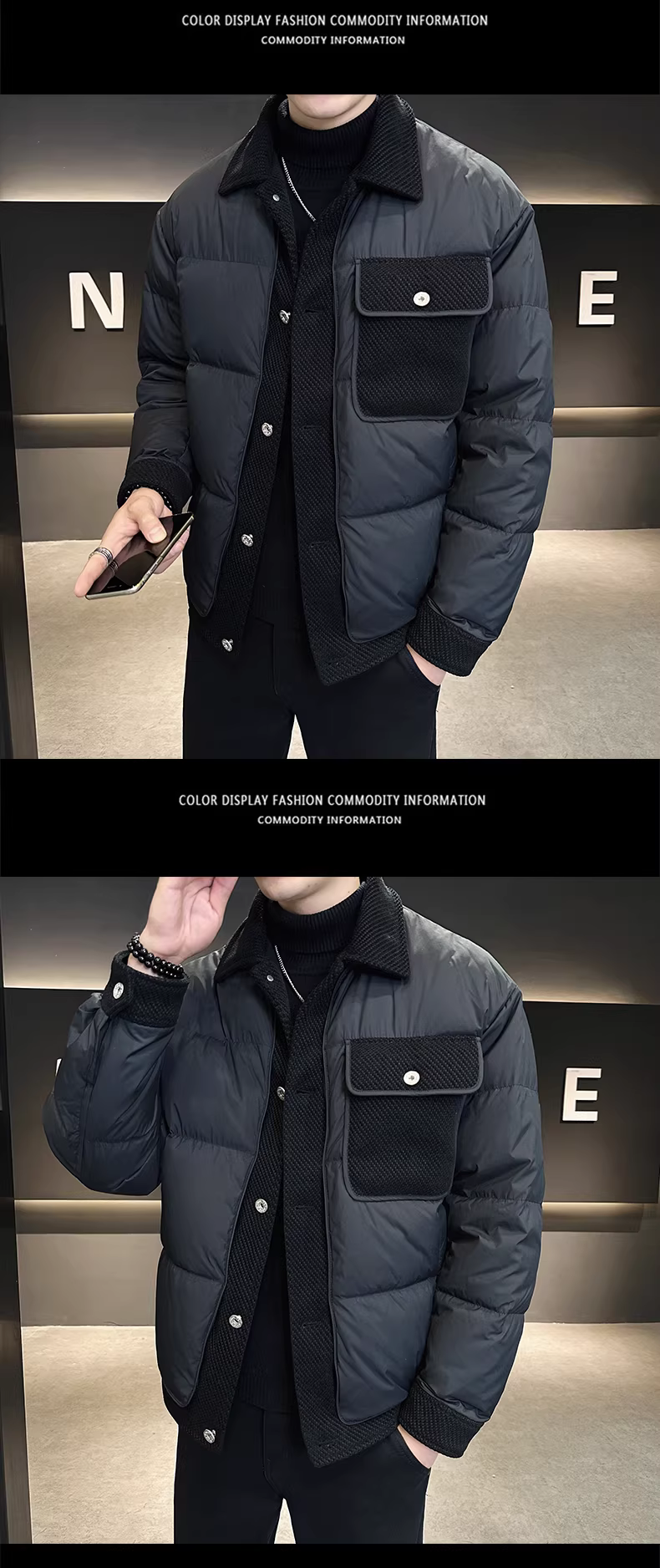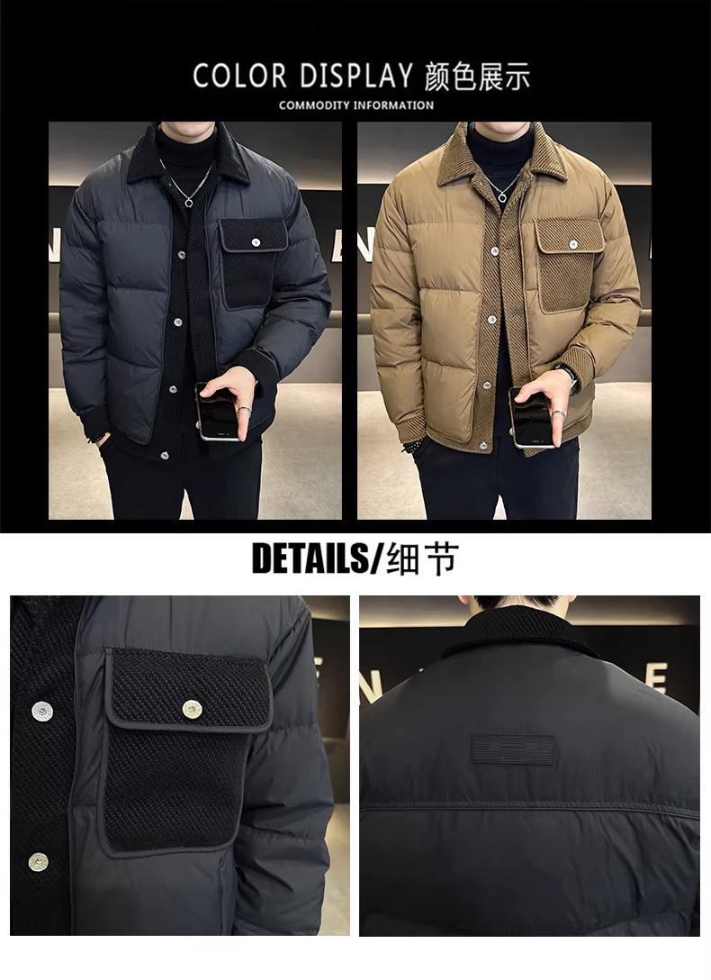 - Áo khoác có cổ thiết kế ghép nối dành cho nam, dày dặn mùa đông, ấm áp và chống lạnh, cao cấp nhẹ nhàng sang trọng, áo khoác ngắn dáng rộng, phong cách giản dị.