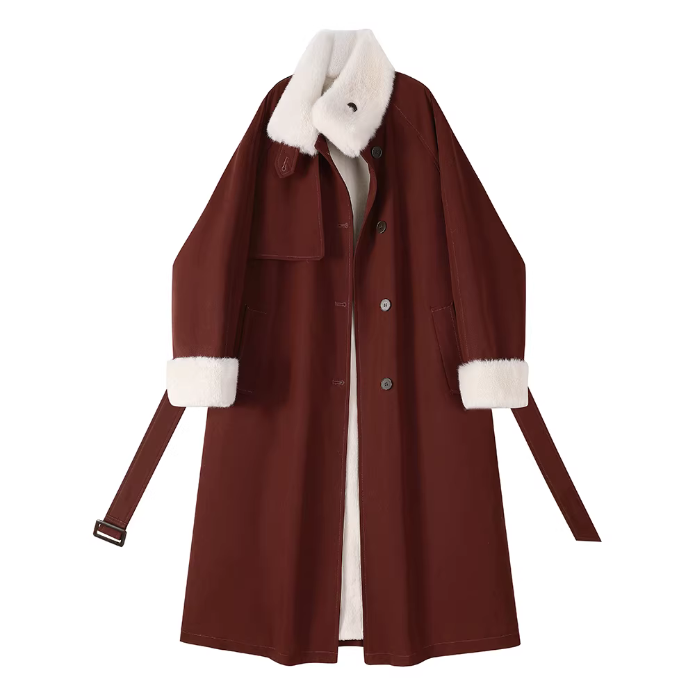 - Áo khoác cổ đứng dày dặn kiểu Hàn Quốc dành cho nữ, mẫu mới mùa đông mang phong cách cao cấp, áo khoác dài trung bình lót lông cừu.