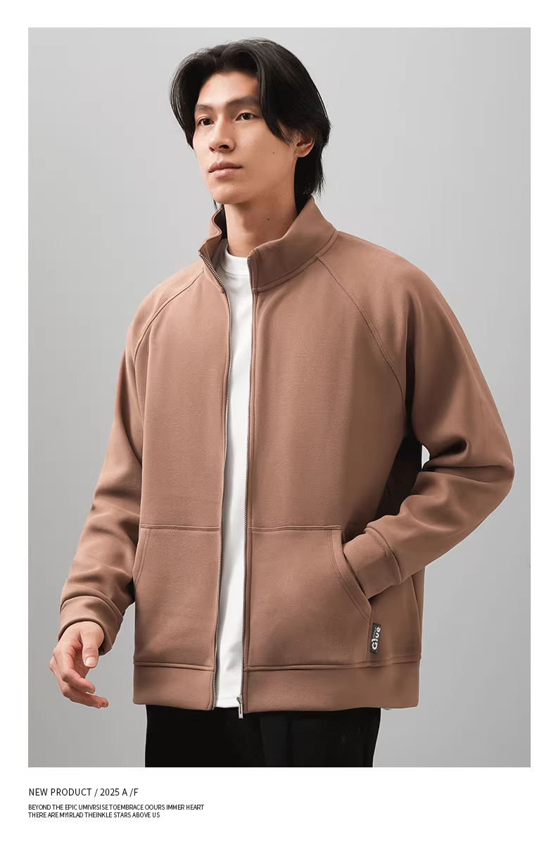 Áo khoác cổ đứng lót lông cừu hạng nặng Pure Group 400G dành cho nam, áo cardigan kiểu Mỹ mùa thu đông có khóa kéo, áo khoác thể thao ấm áp lót lông cừu.