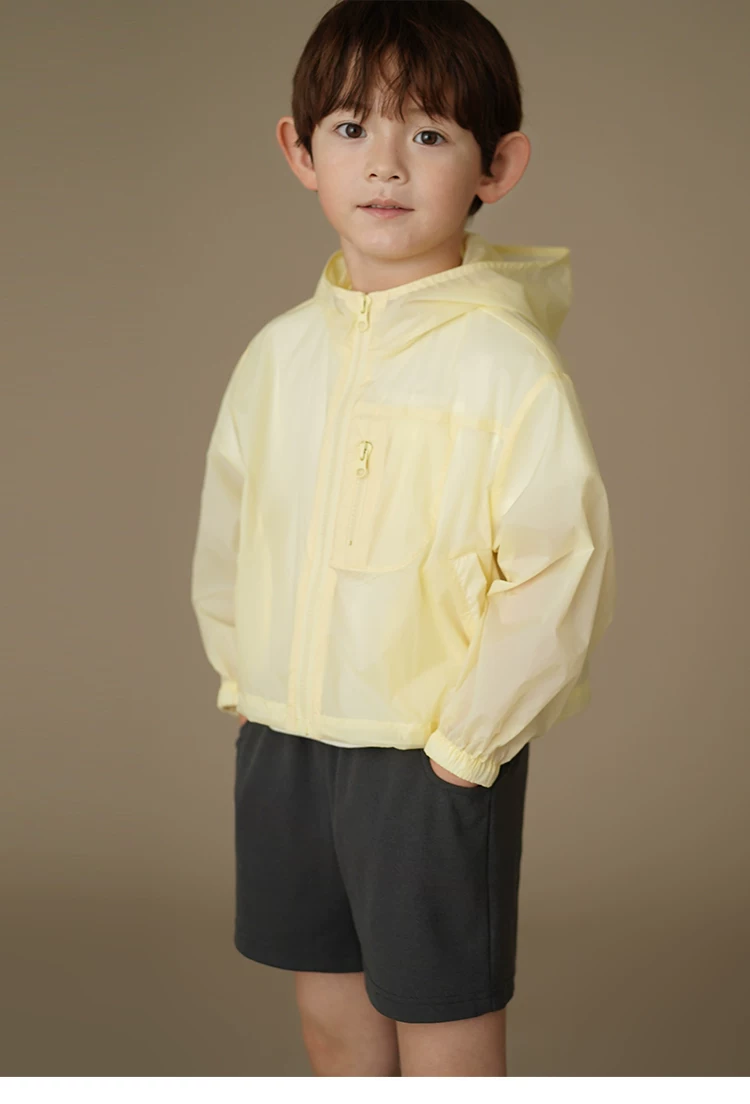Áo khoác có mũ mùa hè cho trẻ em, quần áo chống nắng ngắn chống tia cực tím cho bé trai và bé gái, kiểu dáng mỏng.
