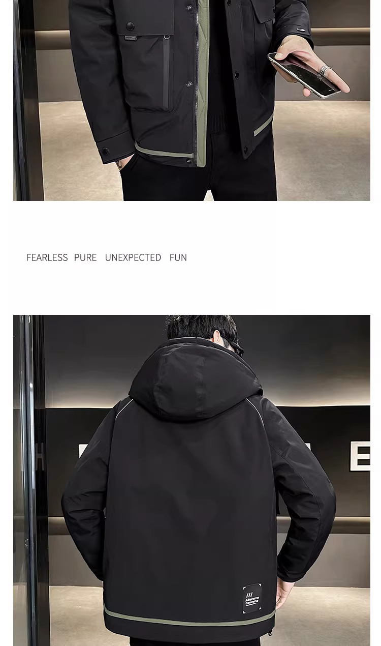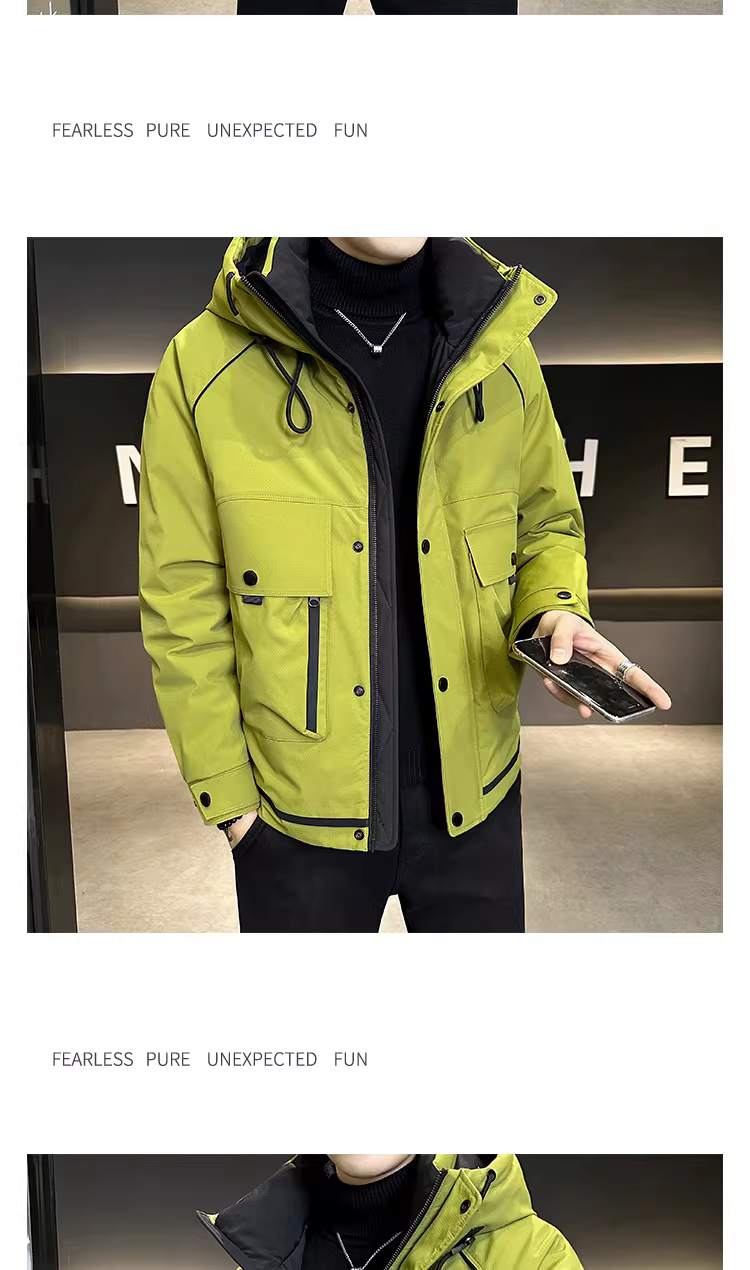 - Áo khoác có mũ trùm đầu dành cho nam, kiểu dáng ngắn, thời trang mới mùa đông 2024, cao cấp, hợp thời trang, dày dặn, ấm áp, áo khoác gió.