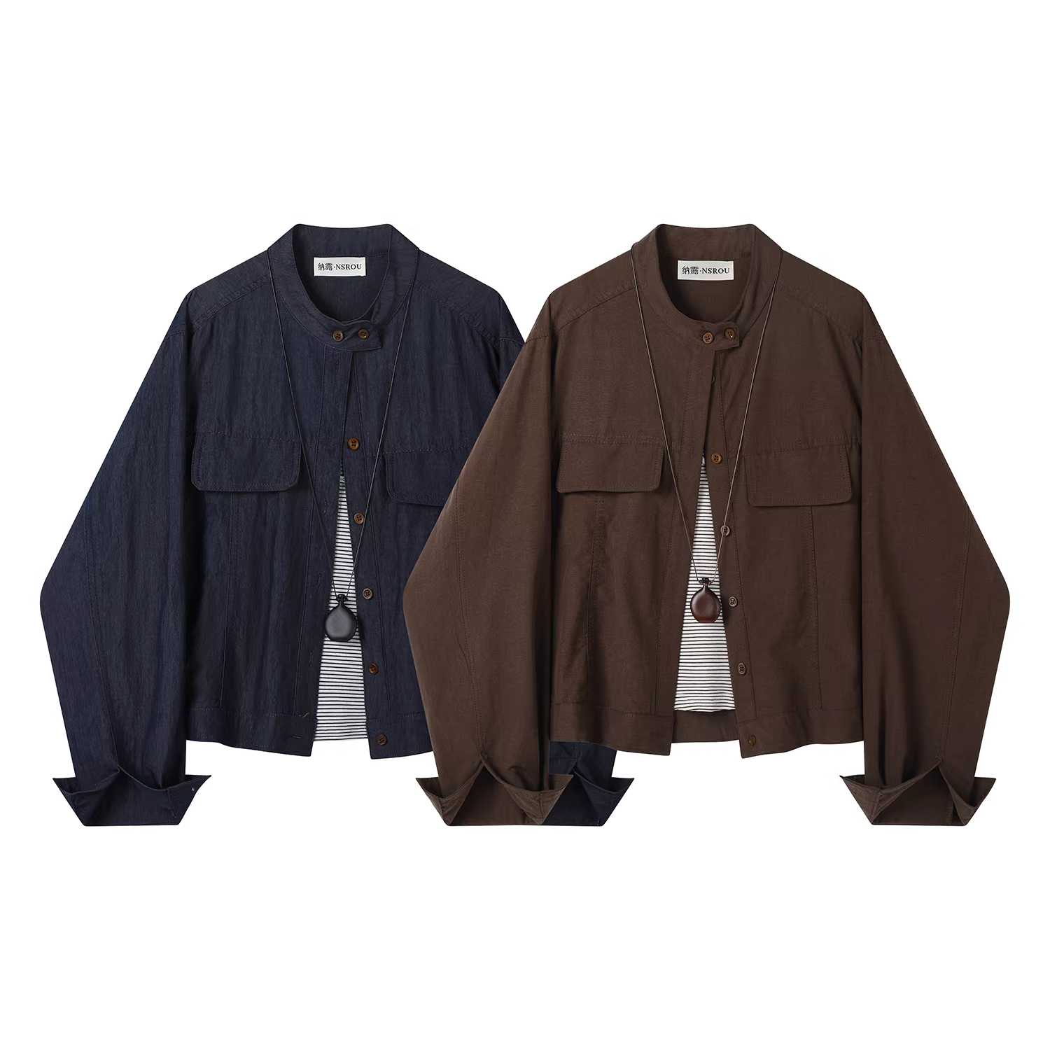 - Áo khoác cổ tròn ngắn màu cà phê cổ điển của Mỹ dành cho nữ, phong cách mới đầu thu, áo khoác thon gọn, nhỏ nhắn, đa năng, áo yếm