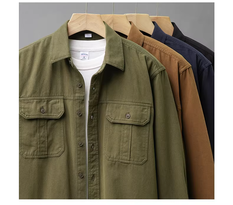 - Áo khoác công nhân nặng 400G dành cho nam, kiểu mới xuân thu 2024, áo khoác sơ mi cổ điển kiểu Mỹ chất liệu cotton nguyên chất, phong cách thường ngày dành cho nam