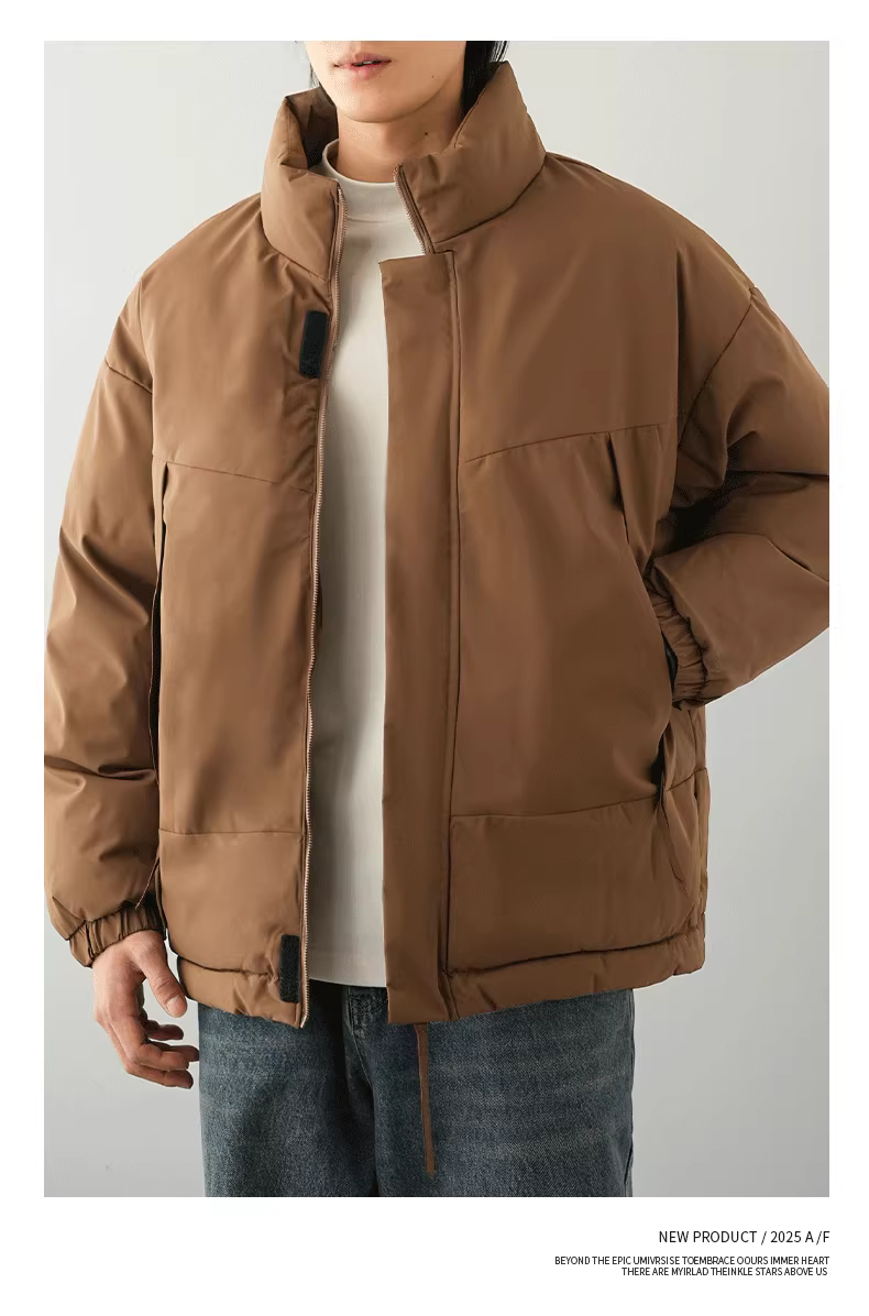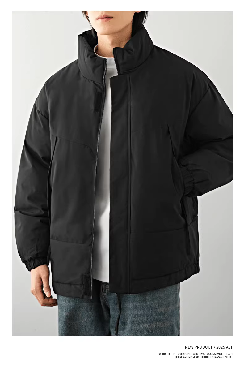 Áo khoác cotton cổ đứng kiểu Mỹ OMZM dành cho nam, áo khoác dày có khóa kéo ấm áp theo phong cách cổ điển mùa đông, áo khoác cỡ lớn chống gió màu trơn.