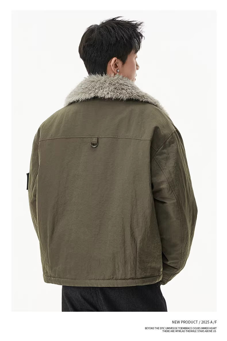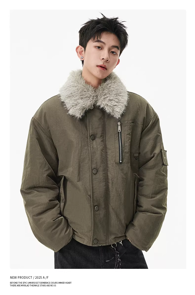 Áo khoác cotton săn bắn kiểu Mỹ nguyên chất dành cho nam, mùa đông, mát mẻ và sành điệu, cổ lông có thể tháo rời, áo khoác bảo hộ lao động bằng cotton dày.