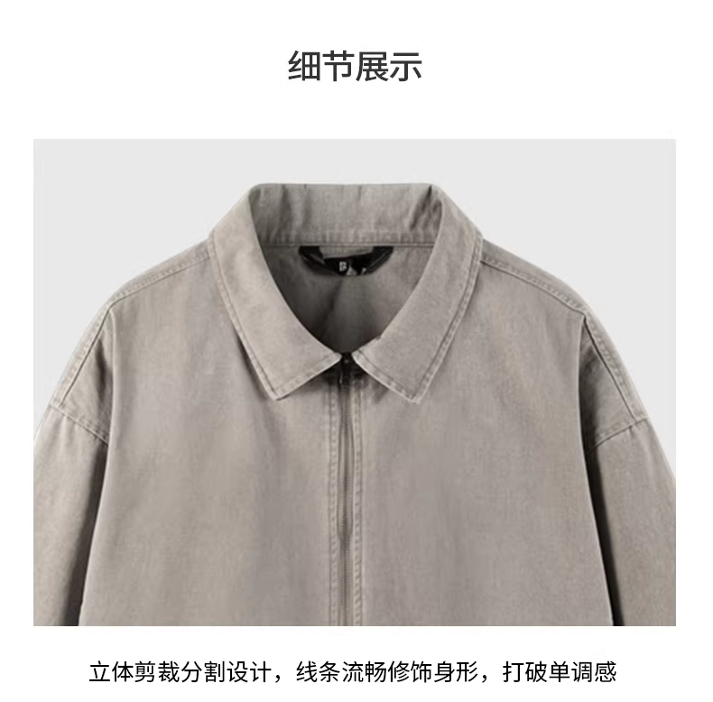 - Áo khoác cotton vintage giặt mềm cho nam, kiểu dáng rộng mùa thu, áo khoác công nhân cổ điển kiểu Mỹ, áo khoác Detroit.