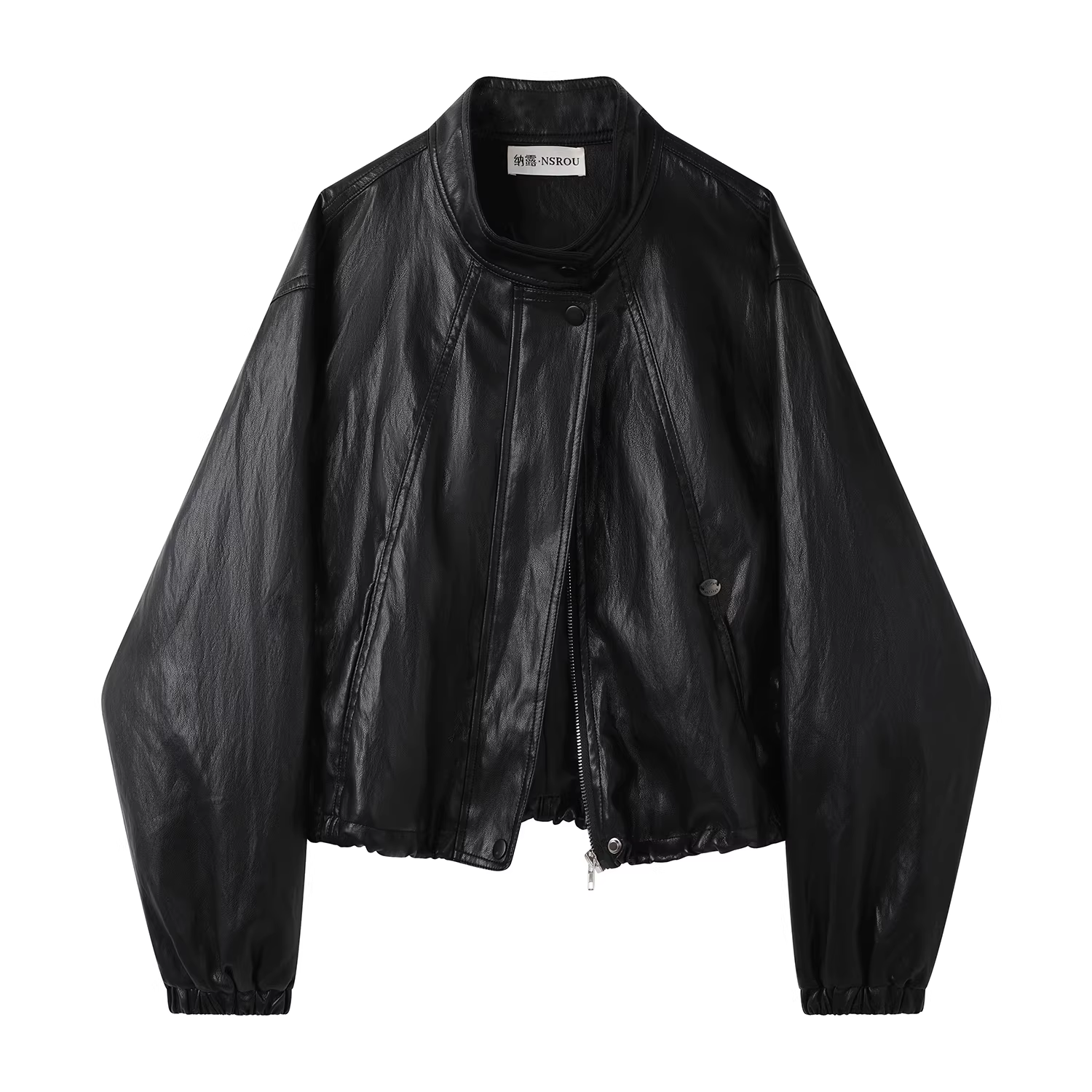 Áo khoác da cổ đứng màu mơ thanh lịch kiểu Hàn Quốc dành cho nữ, áo khoác biker ngắn mới cho đầu thu, cỡ nhỏ.