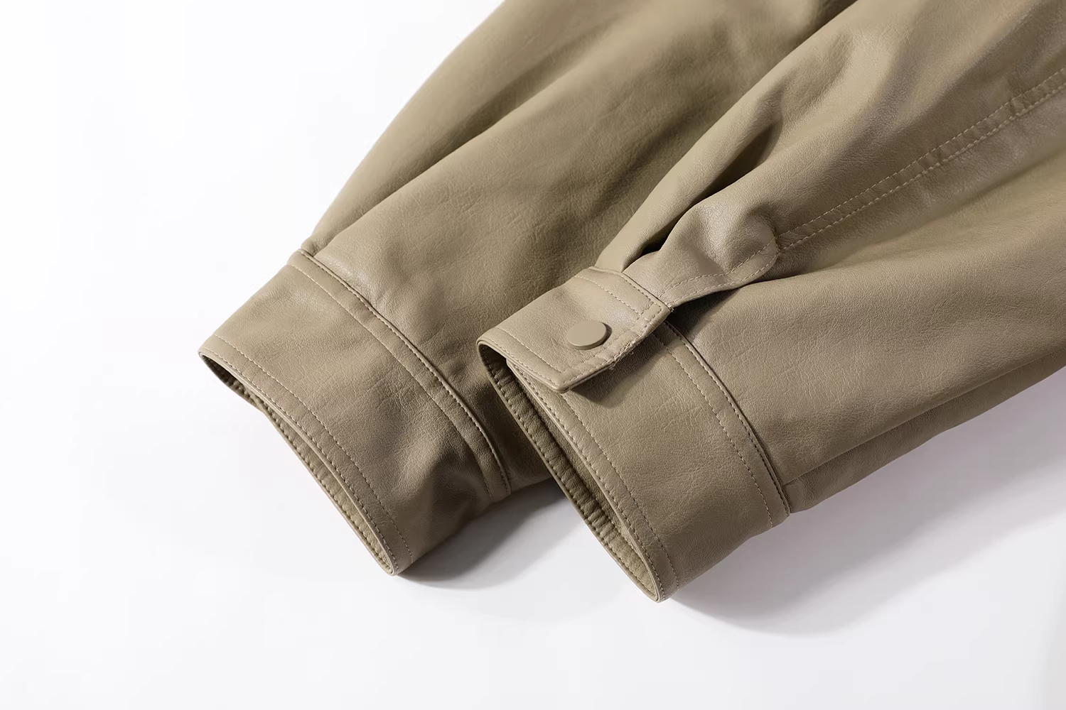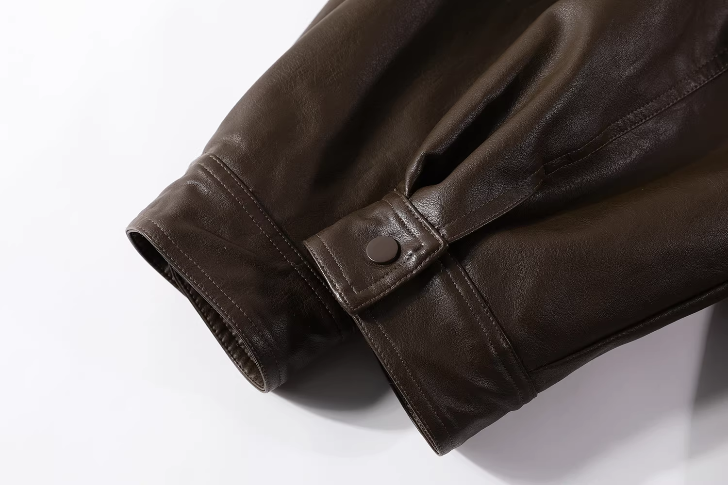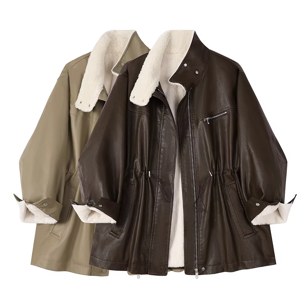 - Áo khoác da cổ đứng màu nâu retro Maillard dành cho nữ trong mùa thu đông, áo khoác len cừu dài vừa phải cao cấp kiểu Mỹ