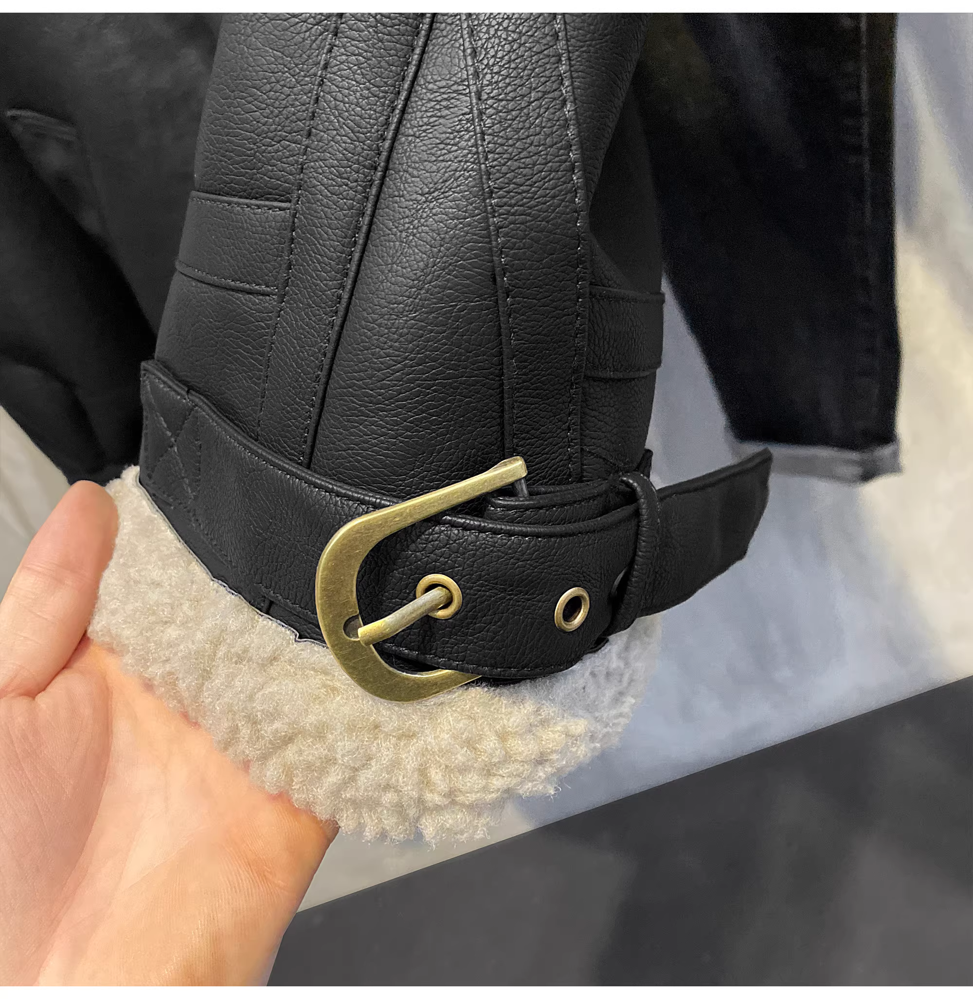 - Áo khoác da cổ lông cừu retro LUUD Dongdaemun, phong cách cá tính, ấm áp, dày dặn, hợp thời trang mùa đông dành cho nam