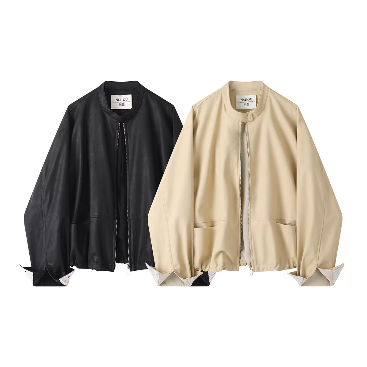 - Áo khoác da cổ tròn màu trắng nhạt phong cách Hàn Quốc dành cho nữ, mẫu mới 2025, áo khoác biker nhỏ nhắn mùa xuân thu