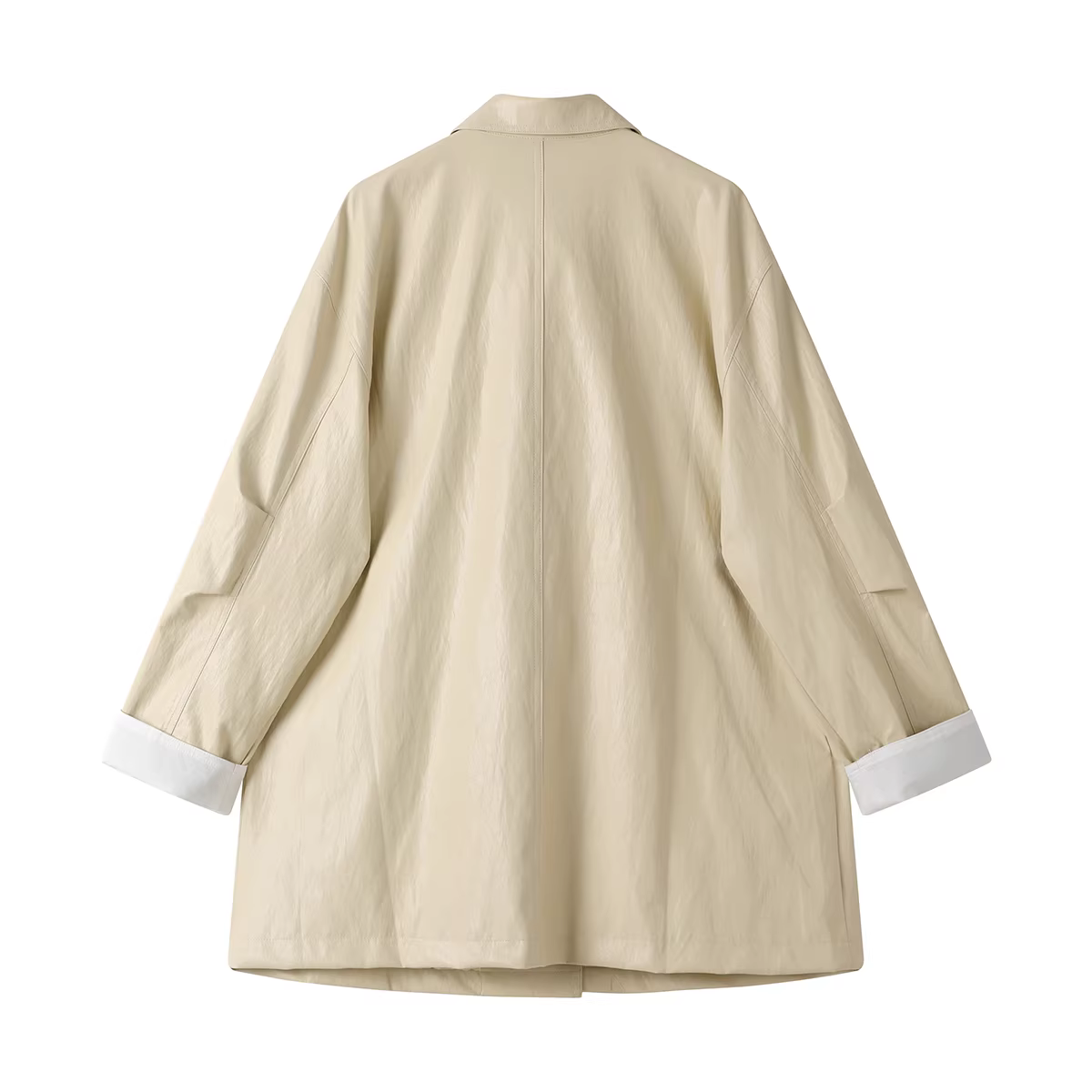 - Áo khoác da đen dáng rộng, kiểu dáng cổ điển Mỹ, dài trung bình, dành cho nữ, phong cách mùa xuân thu mát mẻ, kiểu dáng áo khoác trench coat có ve.