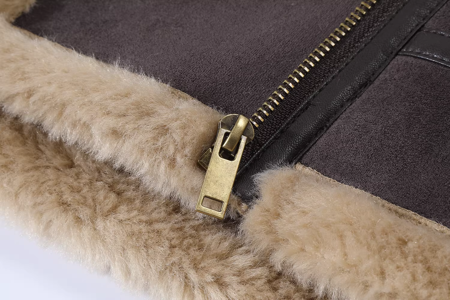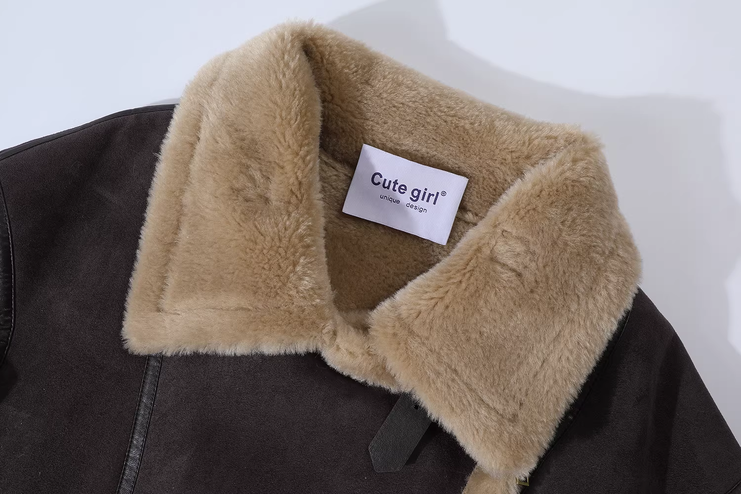 Áo khoác da lộn kiểu CuteGirl Melard dành cho nữ, mùa thu đông, áo khoác đa năng và tôn dáng