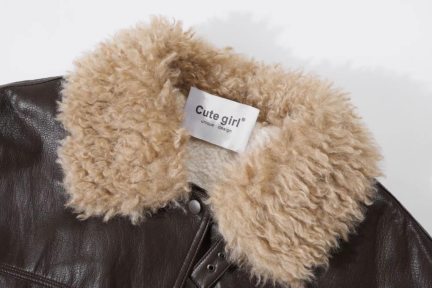 - Áo khoác da lót lông cừu màu cà phê phong cách CuteGirl Barn dành cho nữ, áo khoác dáng rộng đa năng cao cấp mùa thu