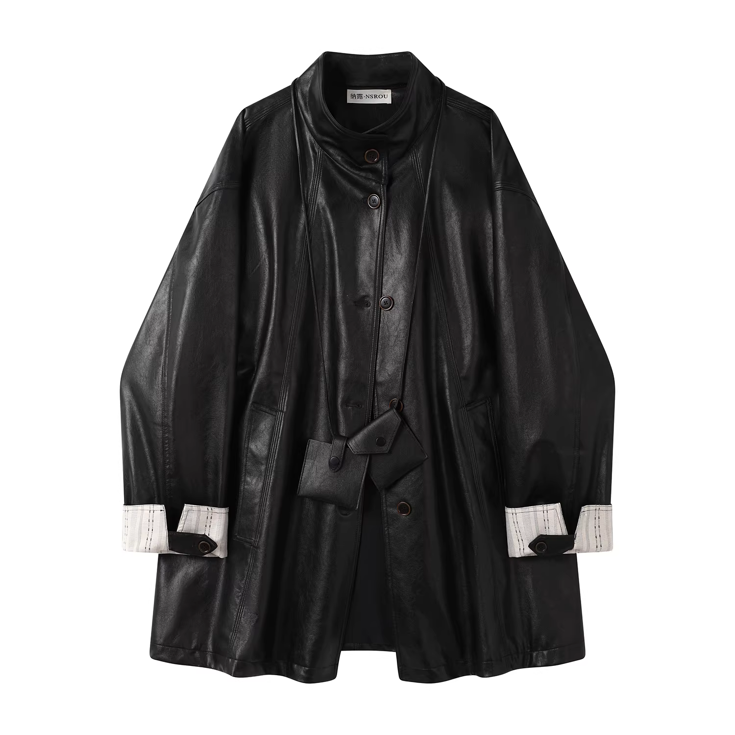 - Áo khoác da màu cà phê cổ đứng phong cách retro Melard dài vừa phải dành cho nữ, áo khoác xe máy mùa thu mới kiểu trench coat