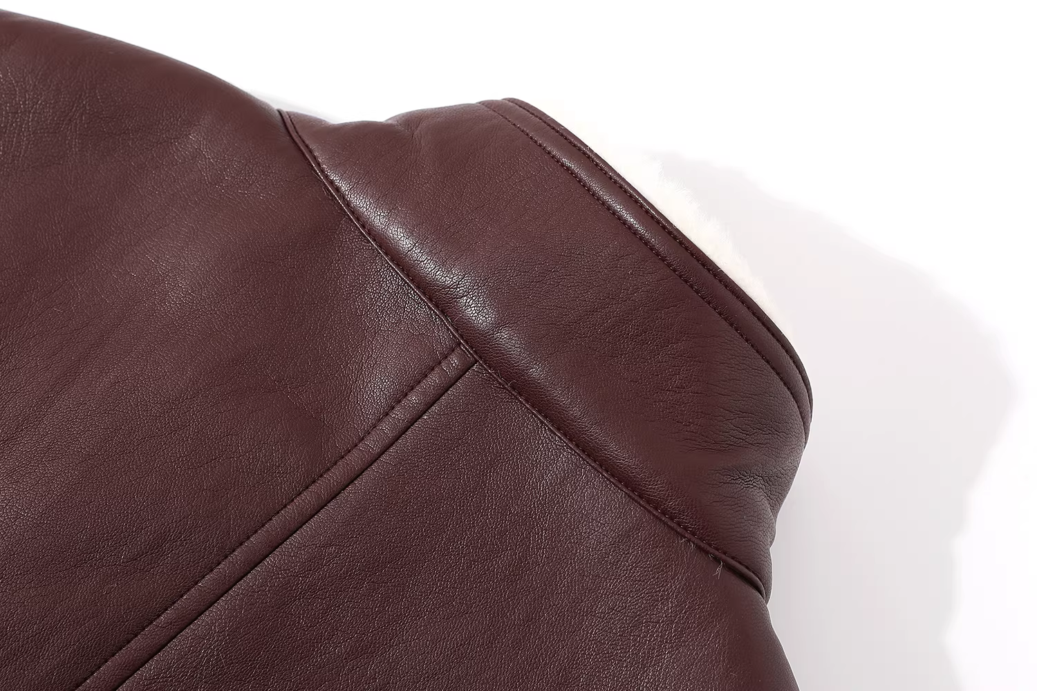 - Áo khoác da Melard cổ điển dài vừa phải mang lại cảm giác cao cấp, độc đáo và siêu phong cách, cổ đứng lót lông cừu, màu cà phê, dành cho nữ, mùa thu đông.