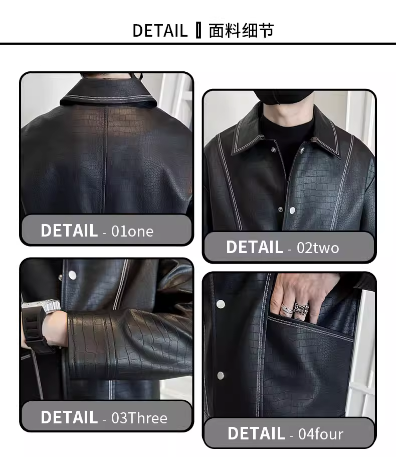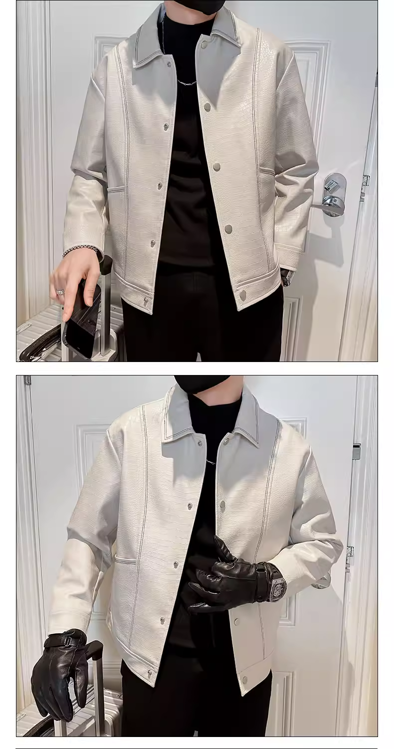 - Áo khoác da nam đẹp, kiểu dáng mới thời thượng, cổ điển, ngắn, chất liệu giả da cá sấu, thích hợp cho mùa thu đông.