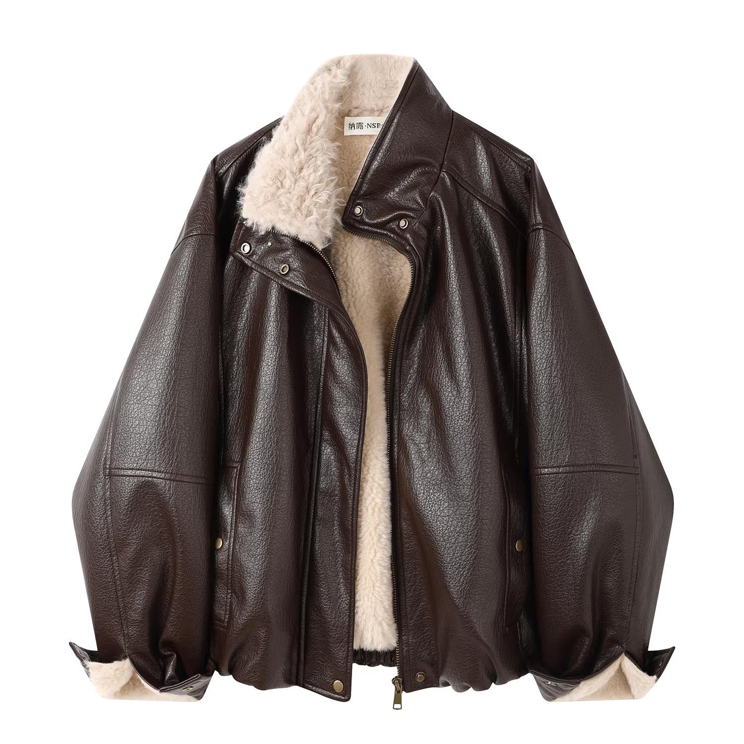 - Áo khoác da ngắn dày dặn cổ điển dành cho nữ, áo khoác phi công kiểu Mỹ lót lông cừu mùa đông