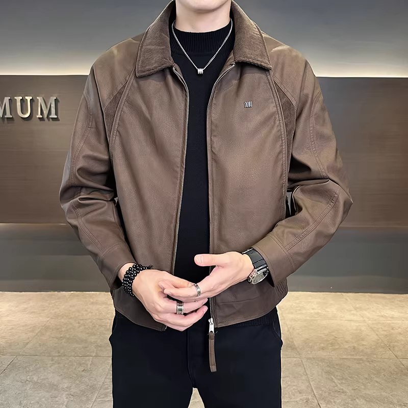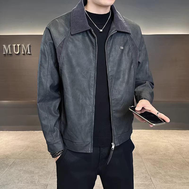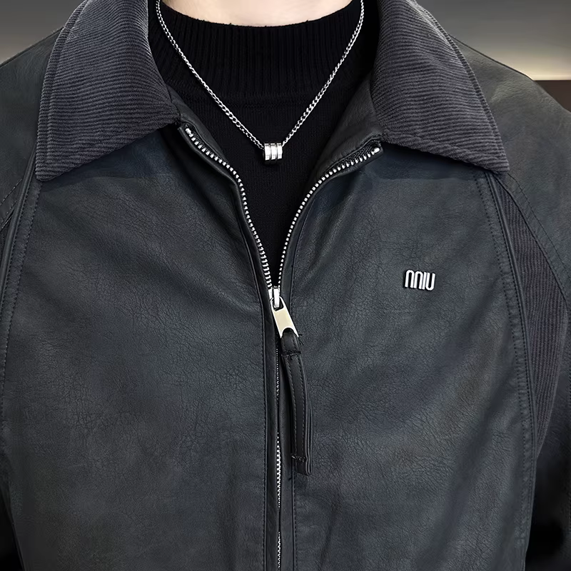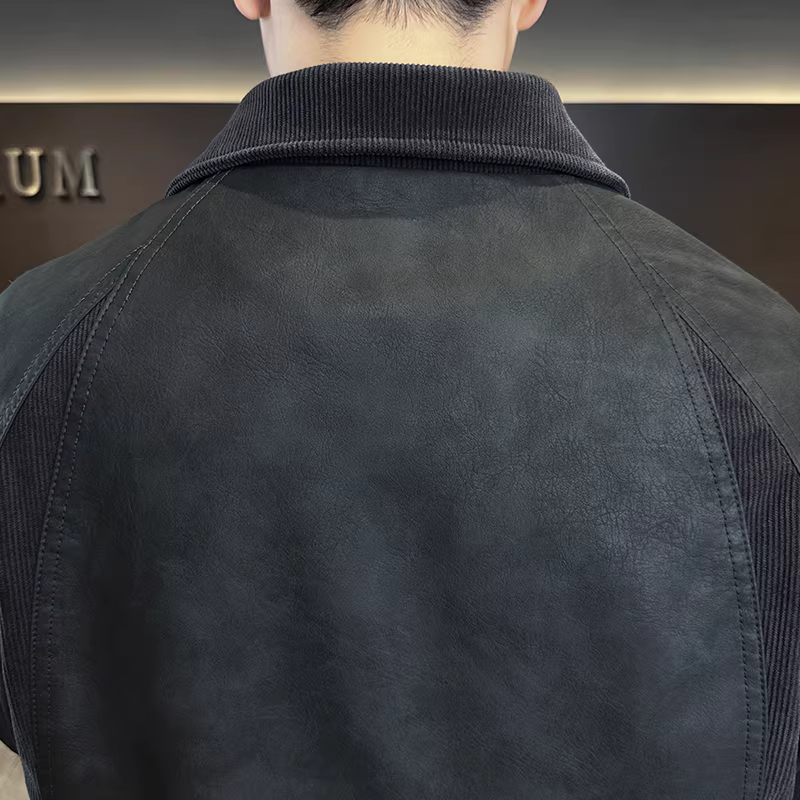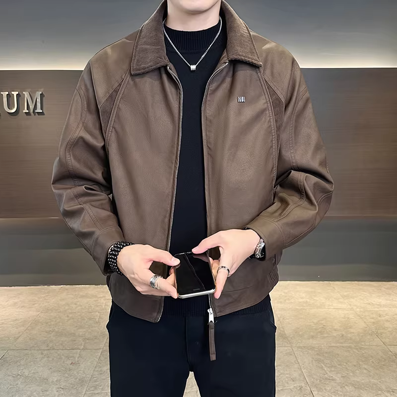 - Áo khoác da phối chất liệu cao cấp dành cho nam, kiểu dáng thời trang mới mùa thu 2025, kiểu dáng ngắn phong cách biker.