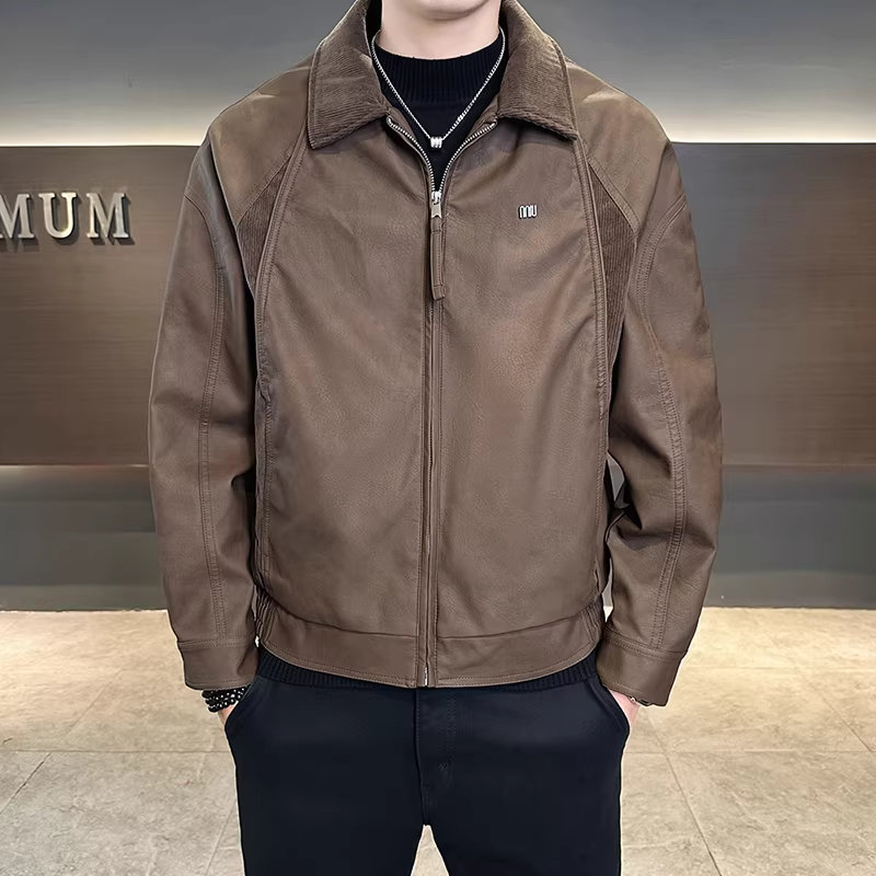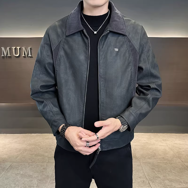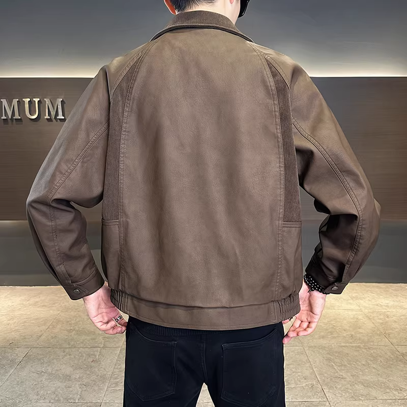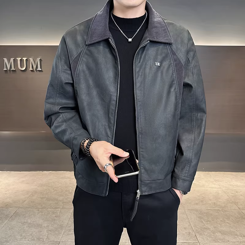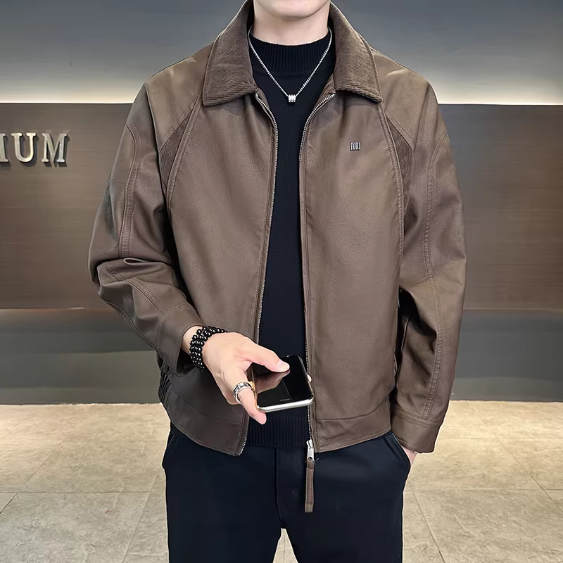 - Áo khoác da phối chất liệu cao cấp dành cho nam, kiểu dáng thời trang mới mùa thu 2025, kiểu dáng ngắn phong cách biker.