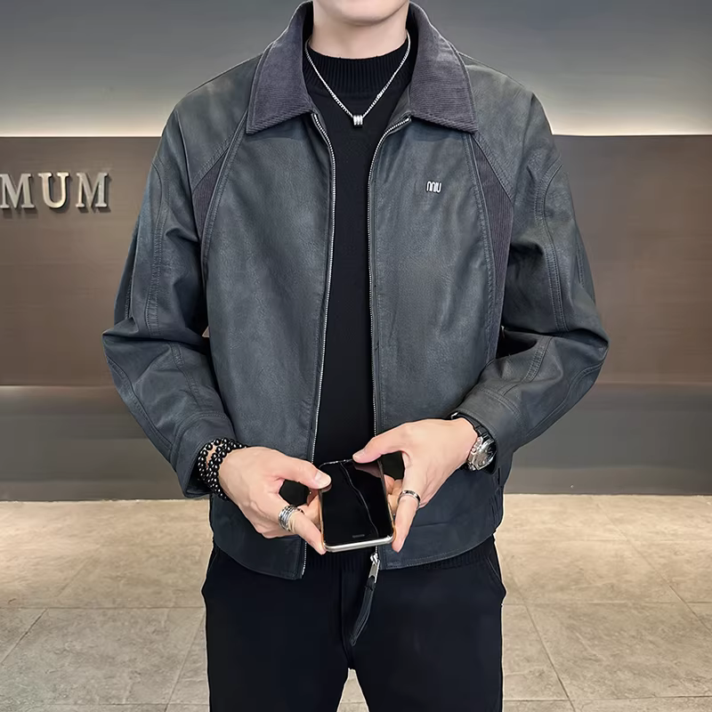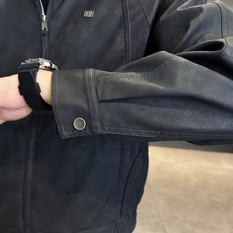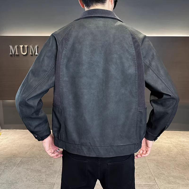 Áo khoác da phối chất liệu cao cấp dành cho nam, kiểu dáng thời trang mới mùa thu 2025, kiểu dáng ngắn phong cách biker.