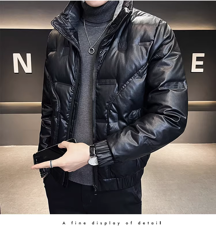 - Áo khoác da PU cổ đứng dành cho nam, mùa đông 2024, kiểu dáng mới thời thượng, cao cấp, ngắn, nhẹ, ấm áp