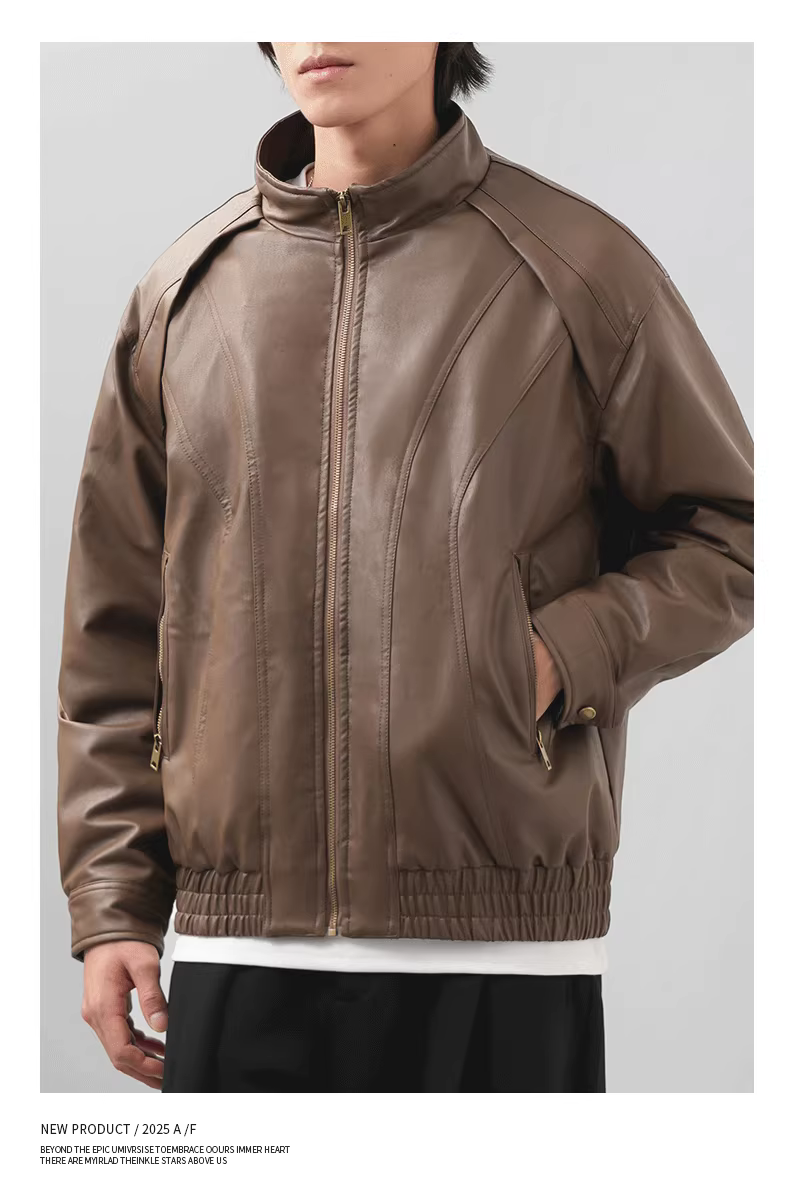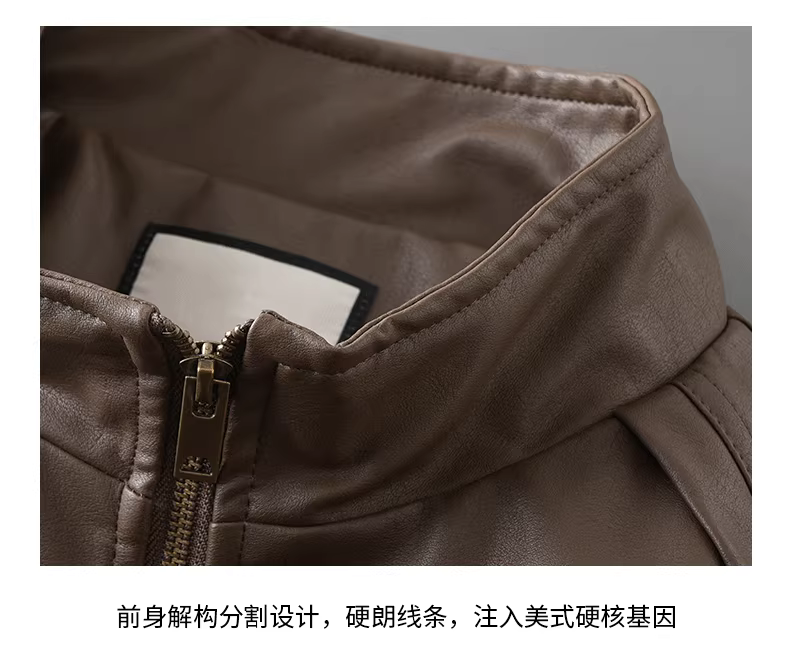 - Áo khoác da PU cổ đứng nam cho mùa thu đông, phong cách Mỹ, áo khoác biker dày dặn cổ điển.