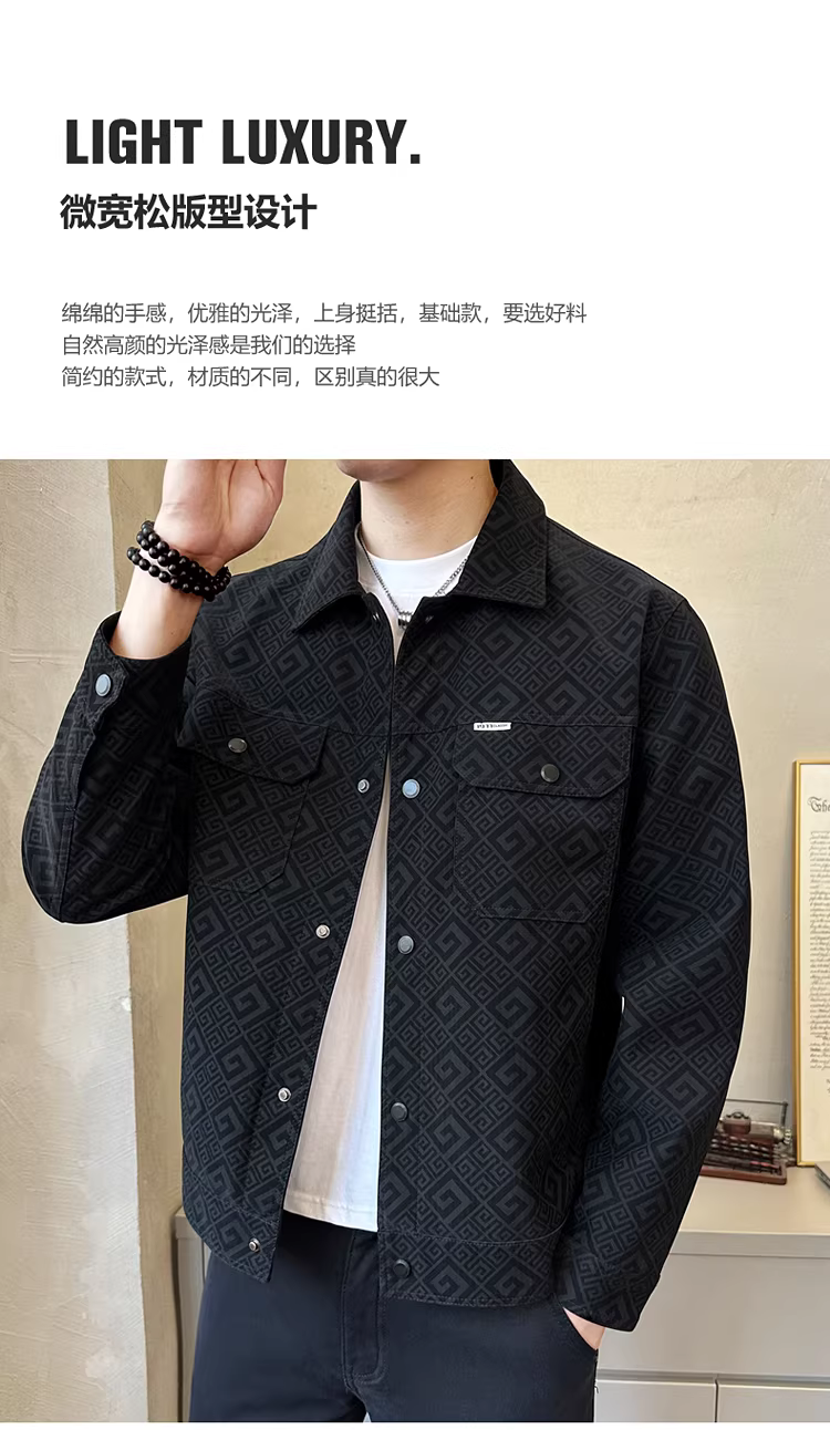- Áo khoác da PU in cao cấp dành cho nam, thời trang thu đông 2025, kiểu dáng thời thượng, ngắn, phong cách công sở.