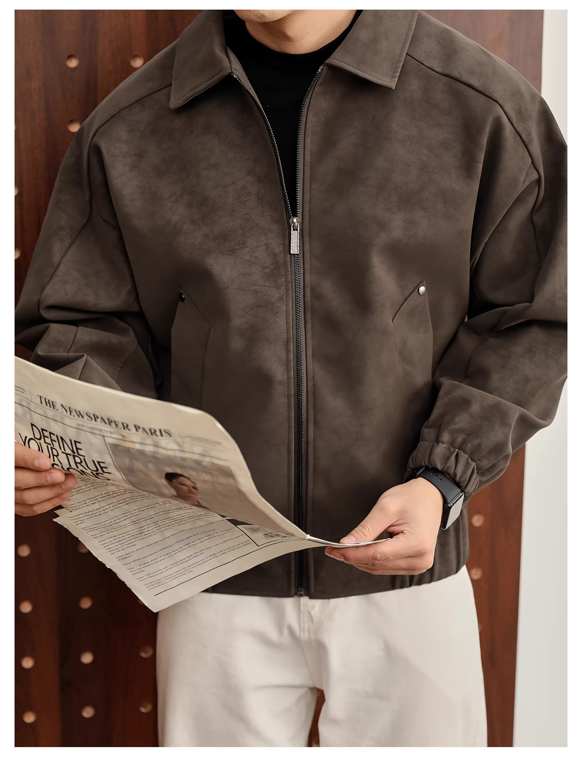 Áo khoác da PU phối vải, cổ trụ, kiểu dáng đa năng, chống gió, thích hợp đi làm, dành cho nam giới.
