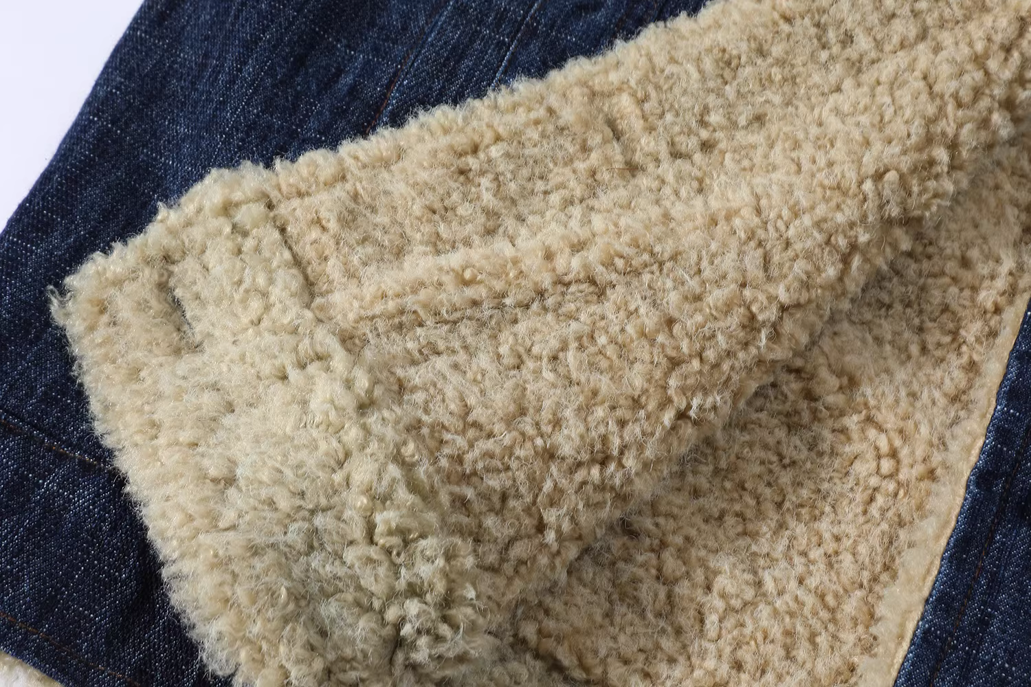- Áo khoác denim cổ lông phong cách Hồng Kông dễ thương dành cho nữ, mùa thu đông, áo khoác cao cấp, dáng rộng, giản dị, đa năng